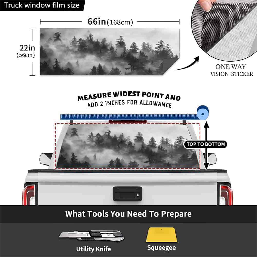 Nuestra calcomanía de ventana trasera de camión tiene un tamaño universal de 66″ x 22″, mide el tamaño de la ventana de tu camión antes de ordenar, se puede cortar fácilmente a la forma exacta que necesitas. Se adapta a la mayoría de camionetas, SUVs y ventanas traseras de automóviles, y hace que tu auto luzca hermoso. Si necesitas un tamaño diferente para tu vehículo, te daremos el tamaño que necesitas sin cargo adicional. Cada una de nuestras calcomanías está diseñada para proporcionar cobertura completa para la ventana trasera de una camioneta pickup.