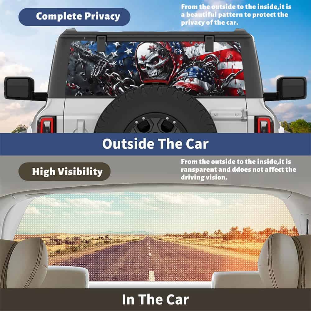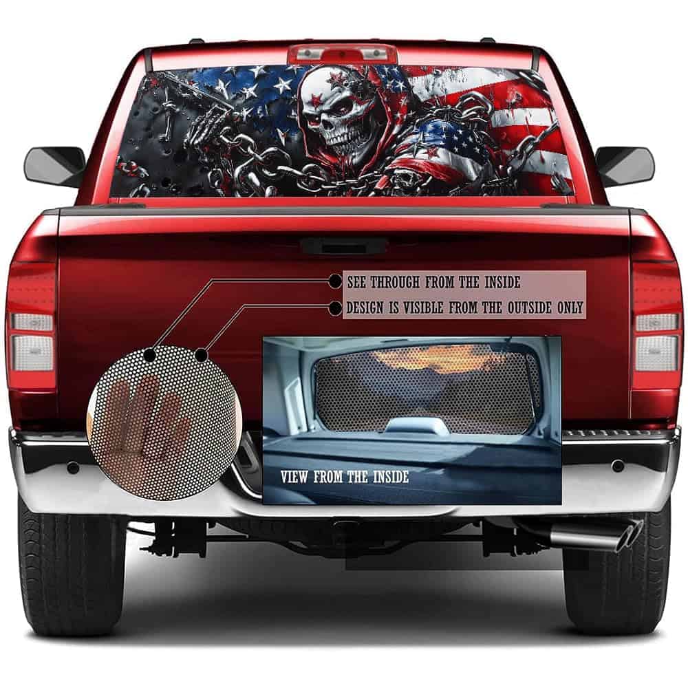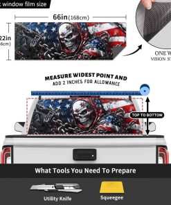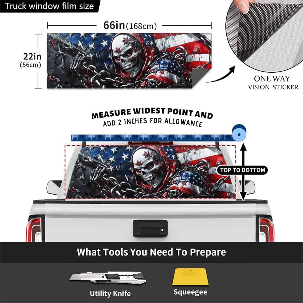 Nuestra calcomanía universal para la ventana trasera del camión tiene un tamaño de 66″ x 22″, mide el tamaño de la ventana de tu camión antes de ordenar, puede ser cortada fácilmente a la forma exacta que necesitas. Se adapta a la mayoría de camionetas pickup, SUVs, ventanas traseras de autos y hace que tu auto se vea hermoso. Si necesitas un tamaño diferente para tu vehículo, te daremos el tamaño que necesitas sin costo adicional. Cada una de nuestras calcomanías está diseñada para proporcionar cobertura total para la ventana trasera de un camión pickup.