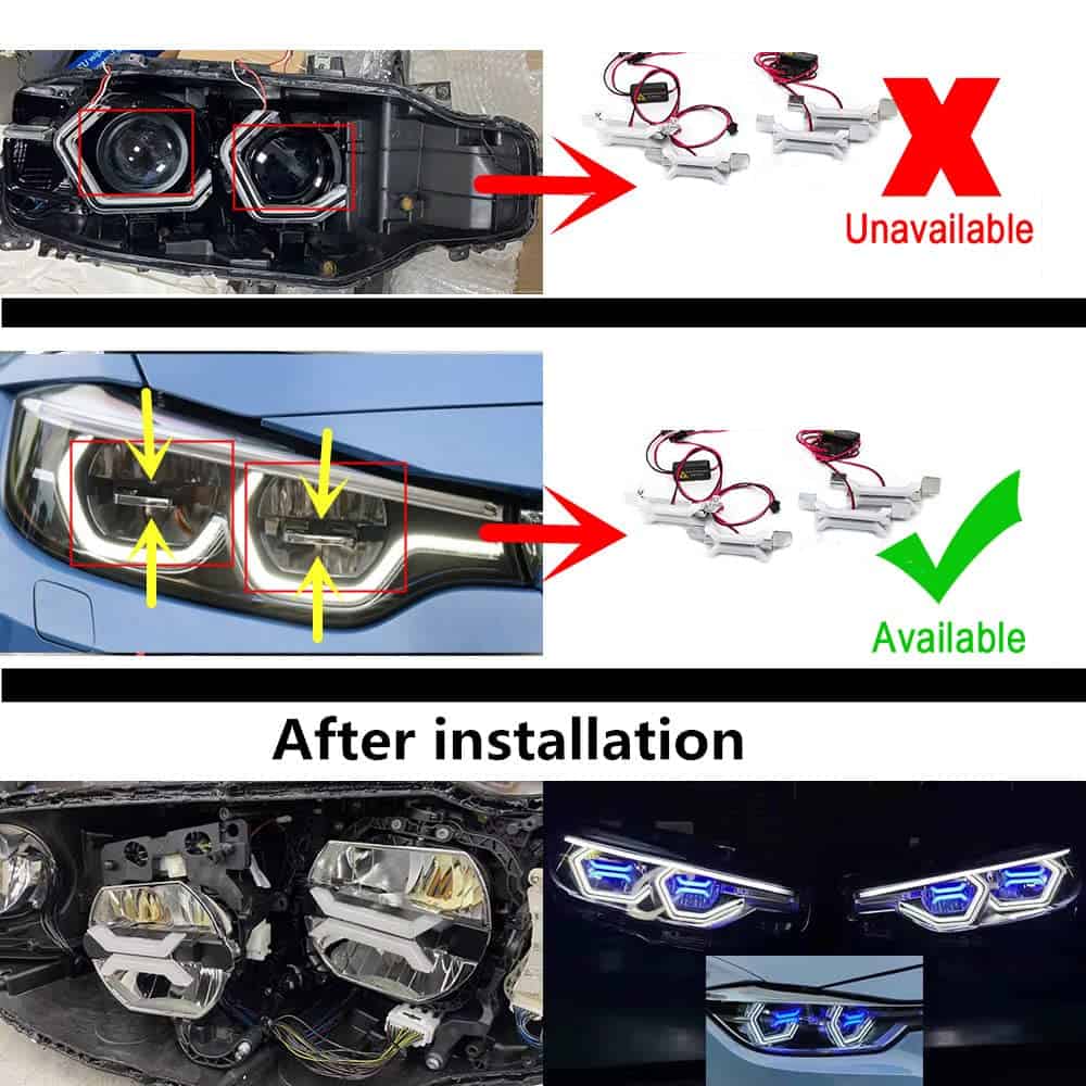 Calcomanía para auto Nueva luz LED X-Type, Luz de ojos de ángel estilo M4 para faros BMW Angel Eyes Retrofit Running Lamp DRL para BMW M4 F35; G30 G38 2018-2020; 6GT G32 2017-2019; M4 2017-2019; Serie 3 F30 F35 F31 2016-2019 G30 G38 F80 M3 F82 F83 F32 F36