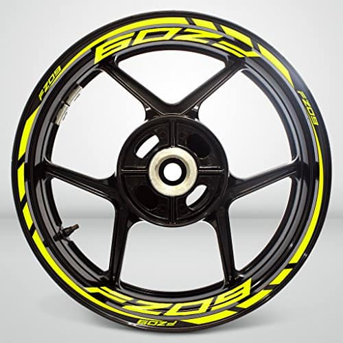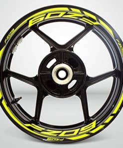 Los productos diseñados por Stickman están completamente concebidos internamente con el núcleo del diseño de su motocicleta en mente. Con 24 opciones de color y repuestos incluidos para cada producto, no tiene que preocuparse por pegarlo usted mismo. Estamos tan seguros de este producto que si de alguna manera logra estropearlo, envíenos una foto de la situación y le enviaremos repuestos, solo tiene que pagar por el envío. La oferta es válida 2 meses desde la fecha de compra. Todos nuestros productos vienen con videos de instrucciones. Simplemente búsquenos y los encontrará. Este set contiene: 8 calcomanías para llantas interiores (4 grandes – llanta trasera, 4 pequeñas – llanta delantera) 8 calcomanías para borde exterior de la llanta (2 en cada lado de cada llanta) Conjunto completo de revestimiento grueso para borde exterior 2 calcomanías para el cuerpo en el diseño mostrado