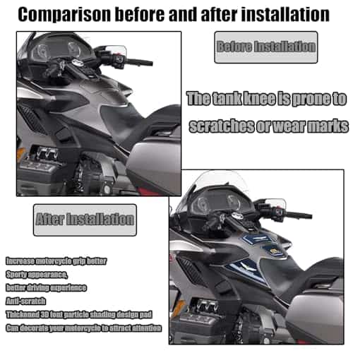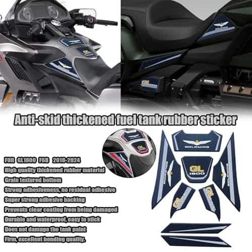 Calcomanía protectora de tanque de combustible lateral para motocicleta Gold wing GL1800 F6B 2024 adhesivo de protección decorativo para cuerpo de automóvil calcomanía de tracción adhesivo protector de tanque de combustible accesorios para motocicletas gold wing gl1800 f6b 2018-2024. Color: Gris, rojo. Como se muestra en la imagen; La superficie elevada es efectiva para antideslizante, y las piernas se adhieren firmemente al cuerpo durante el frenado de emergencia para mantener estable el cuerpo; Fuentes tridimensionales incrustadas, atmósfera hermosa y elegante. Cantidad: Una pieza Opciones A, B, C, D Calcomanía de goma espesa antideslizante con textura de carrocería de motocicleta. Modelos aplicables: PARA Gold wing GL1800 F6B gl1800 f6b 2018-2019-2020-2021-2022-2023-2024.