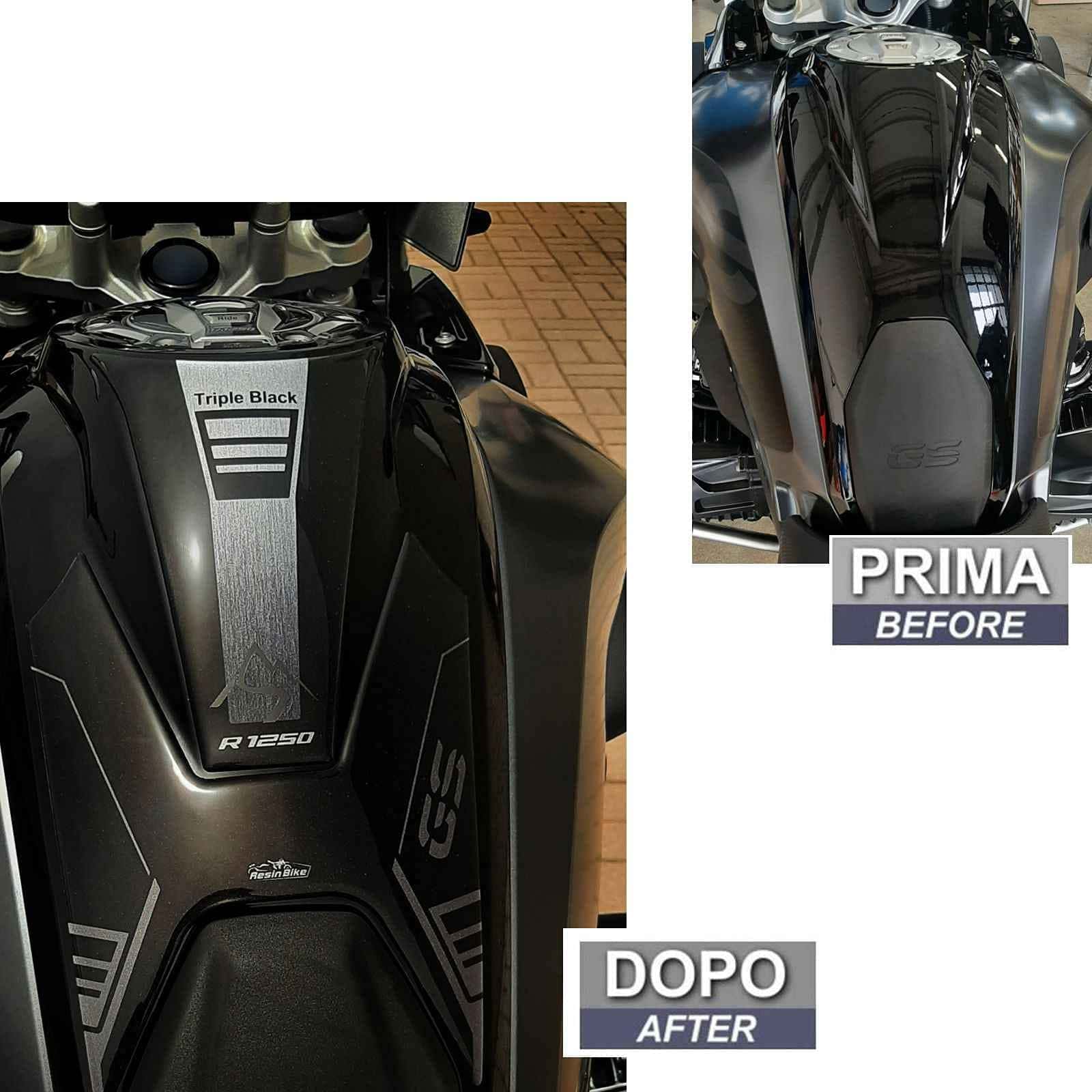 Todas las calcomanías de motocicleta de Resin Bike son duraderas y FABRICADAS EN ITALIA, diseñadas y probadas para ofrecer un alto rendimiento, ideales para decorar y proteger tu moto de rayones, golpes y del clima. Las calcomanías de Resin Bike realzan la estética de tu moto con estilo y personalidad. Resin Bike es una empresa italiana especializada en la creación de llaveros, gráficos adhesivos de resina con efecto 3D personalizado para proteger y decorar scooters, motos de carretera y motos de cross. El equipo de diseñadores gráficos, unidos por la pasión por las dos ruedas, diseña constantemente y crea las líneas modernas de Resin Bike compatibles con tu moto. Para ofrecerte lo mejor, Resin Bike utiliza técnicas de impresión de alta definición y una impresión digital de cuatro colores con colores brillantes de alta calidad que no se desvanecen con el tiempo gracias a un tratamiento especial mediante el cual la resina utilizada se convierte en un filtro contra los rayos UV. Para una buena adherencia del producto, recomendamos lavar las manos con jabón para evitar transferir grasa o suciedad. Limpie la superficie donde se aplicará el adhesivo con un paño suave, seco y limpio que no suelte residuos. En caso de suciedad persistente, es posible utilizar un spray común para limpiar cristales o un desengrasante líquido. Finalmente, seque completamente la superficie y proceda con la aplicación del adhesivo. Manipula la calcomanía exclusivamente desde los bordes evitando tocar la parte adhesiva con las manos, aplica el adhesivo manteniéndolo perfectamente alineado con la forma de la moto para evitar acciones de pegado y despegado que podrían comprometer la estanqueidad del pegamento con el tiempo. Recomendamos empezar por un lado y eliminar suavemente cualquier burbuja de aire a medida que avanzas hacia el lado opuesto