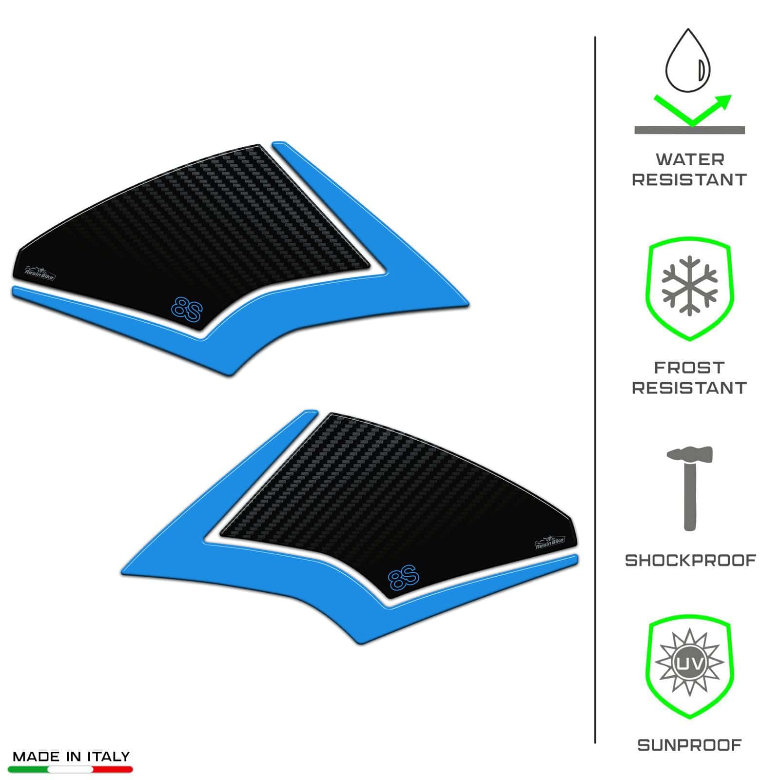 Para ofrecerte lo mejor, Resin Bike utiliza técnicas de impresión de alta definición y digital de cuatro colores con colores brillantes de alta calidad que no se desvanecen con el tiempo. Gracias a un tratamiento especial, la resina utilizada se convierte en un filtro contra los rayos UV para una mayor durabilidad.