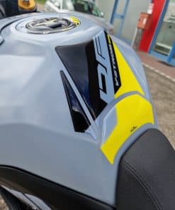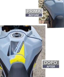 Calcomanías 3D para moto Resin Bike compatible con Suzuki V-Strom 800 DE 2023. Protector de tanque para protección contra impactos y rayones. Las calcomanías de resina están diseñadas y probadas para ofrecer un alto rendimiento, ideales para decorar y proteger tu moto de scrateches, golpes y el clima. Las calcomanías de Resin Bike realzan la estética de tu moto con estilo y personalidad. La empresa italiana Resin Bike se especializa en la creación de llaveros, gráficos adhesivos de resina con efecto 3D personalizados para proteger y decorar scooters, motocicletas de carretera y motocross. El equipo de diseñadores gráficos, unidos por la pasión por las dos ruedas, diseña y crea las líneas modernas de Resin Bike compatibles con tu moto. Para brindarte lo mejor, Resin Bike utiliza técnicas de impresión de alta definición y digital a cuatro colores con colores brillantes de alta calidad que no se desvanecen con el tiempo gracias a un tratamiento especial por el cual la resina utilizada se convierte en un filtro contra los rayos UV. Para una buena adherencia del producto, lavarse las manos con jabón para evitar transferir grasa o suciedad. Limpiar la superficie donde se aplicará el adhesivo con un paño suave, seco y limpio que no libere residuos. En caso de suciedad persistente, es posible utilizar un spray común para limpiar vidrios o un desengrasante líquido. Finalmente, secar bien la superficie y proceder con la aplicación del adhesivo. Manipular la calcomanía exclusivamente desde los bordes evitando tocar la parte adhesiva con las manos, aplicar el adhesivo manteniéndolo perfectamente alineado con la forma de la moto para evitar acciones de pegado y despegado que podrían comprometer la estanqueidad del pegamento con el tiempo. Recomendamos comenzar por un lado y eliminar suavemente cualquier burbuja de aire a medida que avanza hacia el lado opuesto