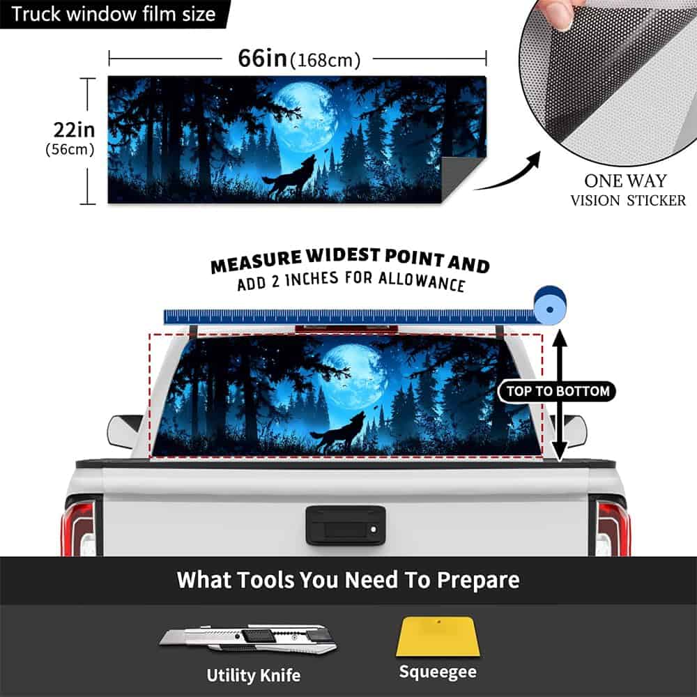 Nuestra calcomanía para ventana trasera de camioneta tiene un tamaño universal de 66″ x 22″, mide el tamaño de la ventana de tu camioneta antes de ordenar, se puede cortar fácilmente a la forma exacta que necesitas. Se adapta a la mayoría de camionetas pickup, SUVs, ventanas traseras de automóviles y hace que tu auto se vea hermoso. Si necesitas un tamaño diferente para tu vehículo, te daremos el tamaño que necesitas sin cargo adicional. Cada una de nuestras calcomanías está diseñada para proporcionar cobertura total para la ventana trasera de una camioneta.