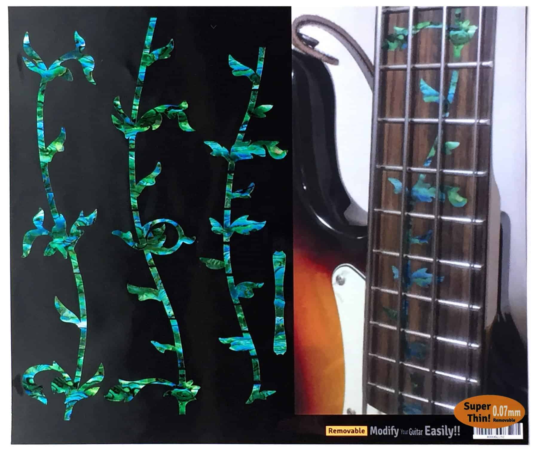 ¡Parecen incrustaciones REALES! ¡Fáciles de aplicar y quitar! ¡Las calcomanías de incrustación son SUPER-DELGADAS y Removibles! ¡Puedes modificar tu bajo fácilmente! ¡No se engancharán con los dedos mientras tocas! Es posible usar spray de ayuda para los dedos o aceite de limón después de aplicar las calcomanías. No quedará adhesivo después de retirar la calcomanía.