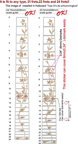 ¡Parecen incrustaciones REALES! ¡Fáciles de aplicar y quitar! ¡Las Calcomanías de Incrustación son SUPER-DELGADAS y Removibles! ¡Puedes modificar tu guitarra tan fácilmente! ¡No se engancharán con tus dedos al tocar! Es posible utilizar un spray de facilidad para dedos o aceite de limón después de aplicar las calcomanías. No quedará adhesivo después de quitar la calcomanía.
