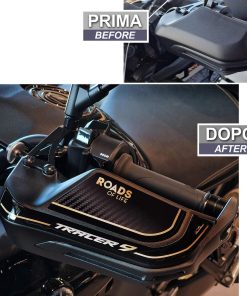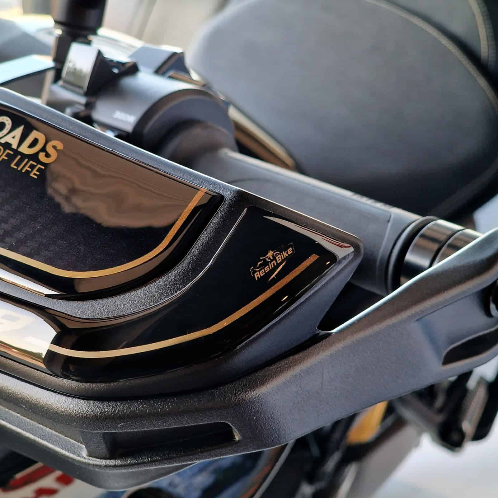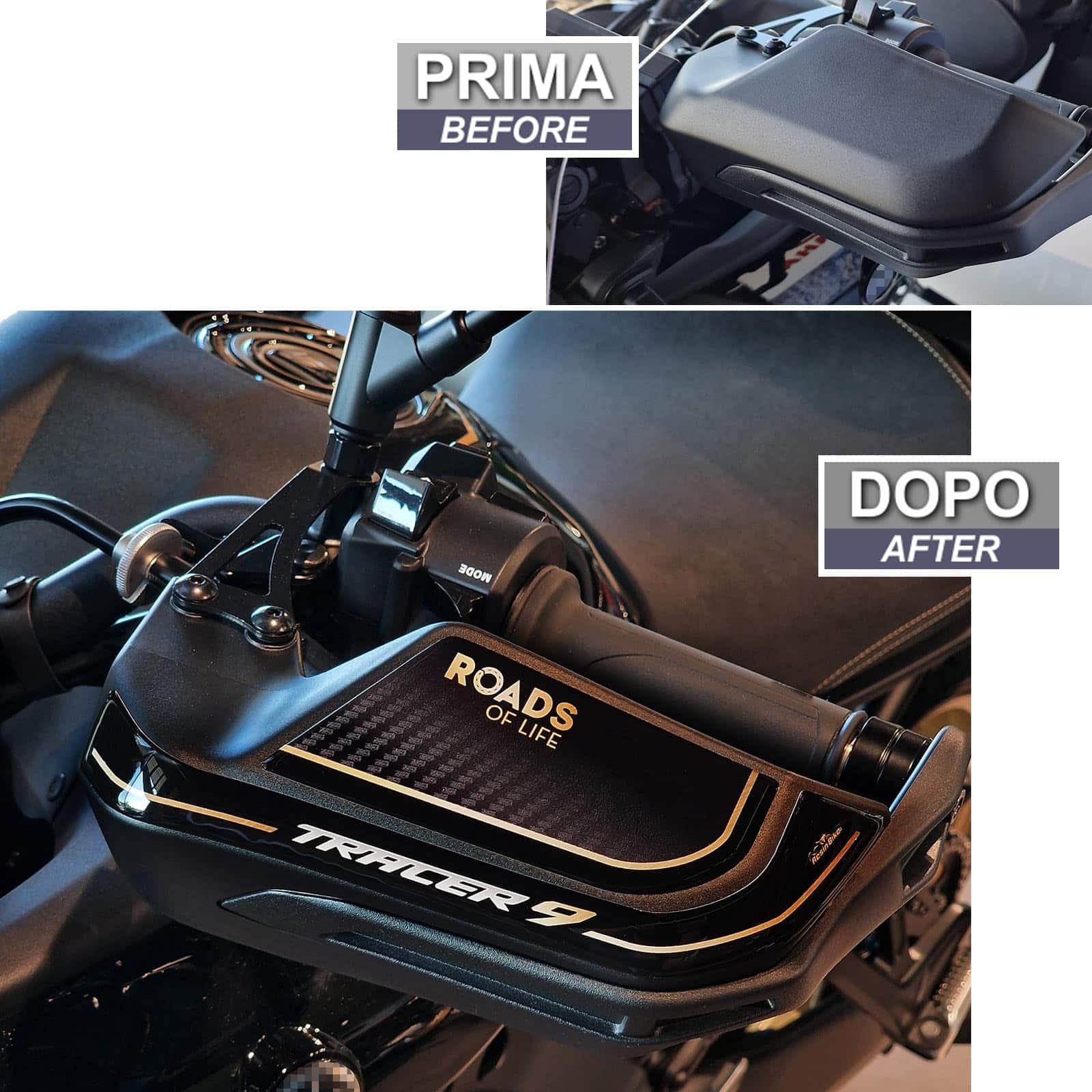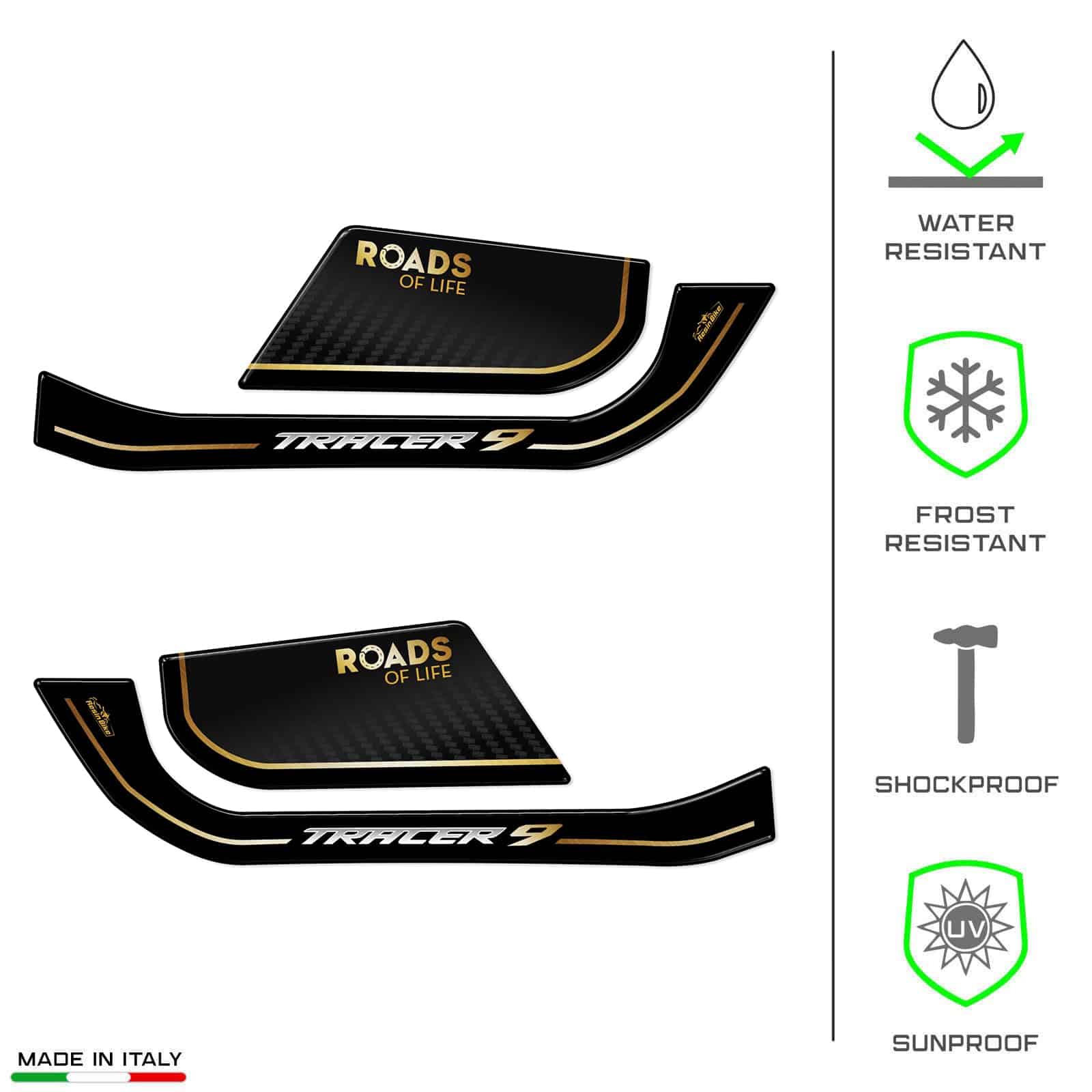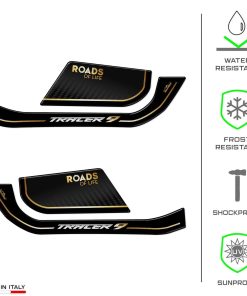 Calcomanías de moto 3D de resina compatibles con Yamaha Tracer 9-9 GT 2021 2023 en color dorado. Las calcomanías de moto de Resin Bike son duraderas y HECHAS EN ITALIA, diseñadas y probadas para ofrecer un alto rendimiento, ideales para decorar y proteger tu moto de arañazos, golpes y condiciones climáticas adversas. Realza la estética de tu moto con estilo y personalidad. Resin Bike es una empresa italiana especializada en la creación de llaveros, gráficos adhesivos de resina con efecto 3D personalizado para proteger y decorar scooters, motos de carretera y motos de campo. Renueva constantemente sus creaciones para ofrecerte una amplia gama de accesorios de motocicleta de calidad con gráficos únicos. El equipo de diseñadores gráficos, unidos por la pasión por las dos ruedas, diseña y crea las líneas modernas de Resin Bike compatibles con tu moto. Utiliza técnicas de impresión de alta definición y impresión digital a cuatro colores con colores brillantes de alta calidad que no se desvanecen con el tiempo gracias a un tratamiento especial que convierte la resina utilizada en un filtro contra los rayos UV. Para una buena adhesión del producto, recomendamos lavar las manos con jabón para evitar transferir grasa o suciedad. Limpia la superficie donde se aplicará el adhesivo con un paño suave, seco y limpio que no deje residuos. En caso de suciedad persistente, es posible utilizar un aerosol común para limpiar cristales o un desengrasante líquido. Finalmente, seca bien la superficie y procede con la aplicación del adhesivo. Manipula la calcomanía exclusivamente desde los bordes evitando tocar la parte adhesiva con las manos, aplica el adhesivo manteniéndolo perfectamente alineado con la forma de la moto para evitar acciones de pegado y despegado que podrían comprometer la estanqueidad del pegamento con el tiempo. Recomendamos comenzar por un lado y eliminar suavemente cualquier burbuja de aire a medida que avanzas hacia el lado opuesto.