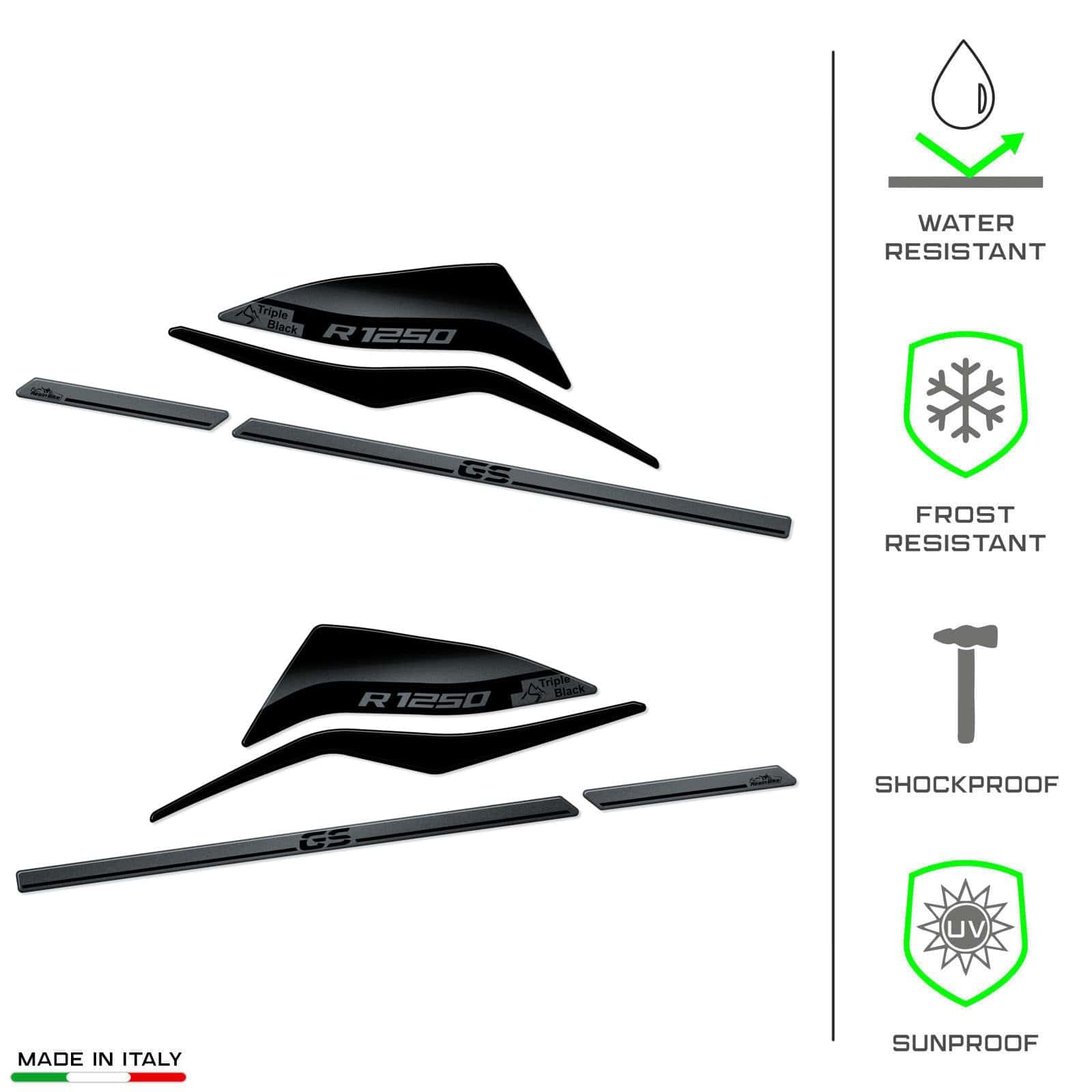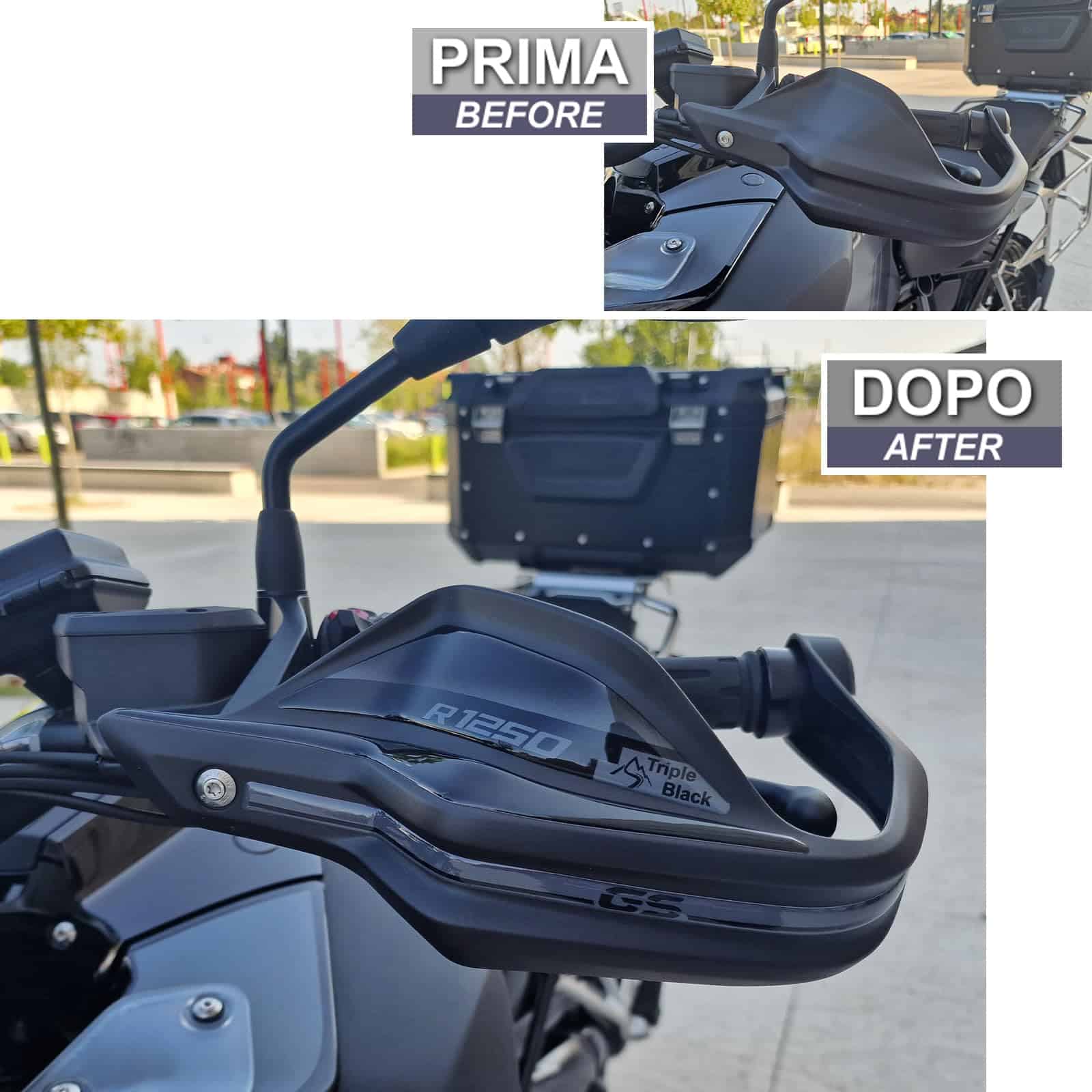 Calcomanías de Moto 3D de Resina Compatible con BMW R 1250 GS – GS Adventure Triple Black 2021-2023. Protectores de Manillar contra Impactos y Rayones. Calcomanías de Resina – Fabricadas en Italia