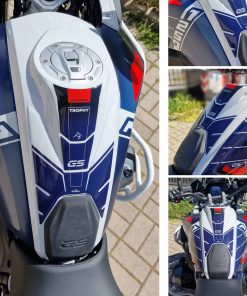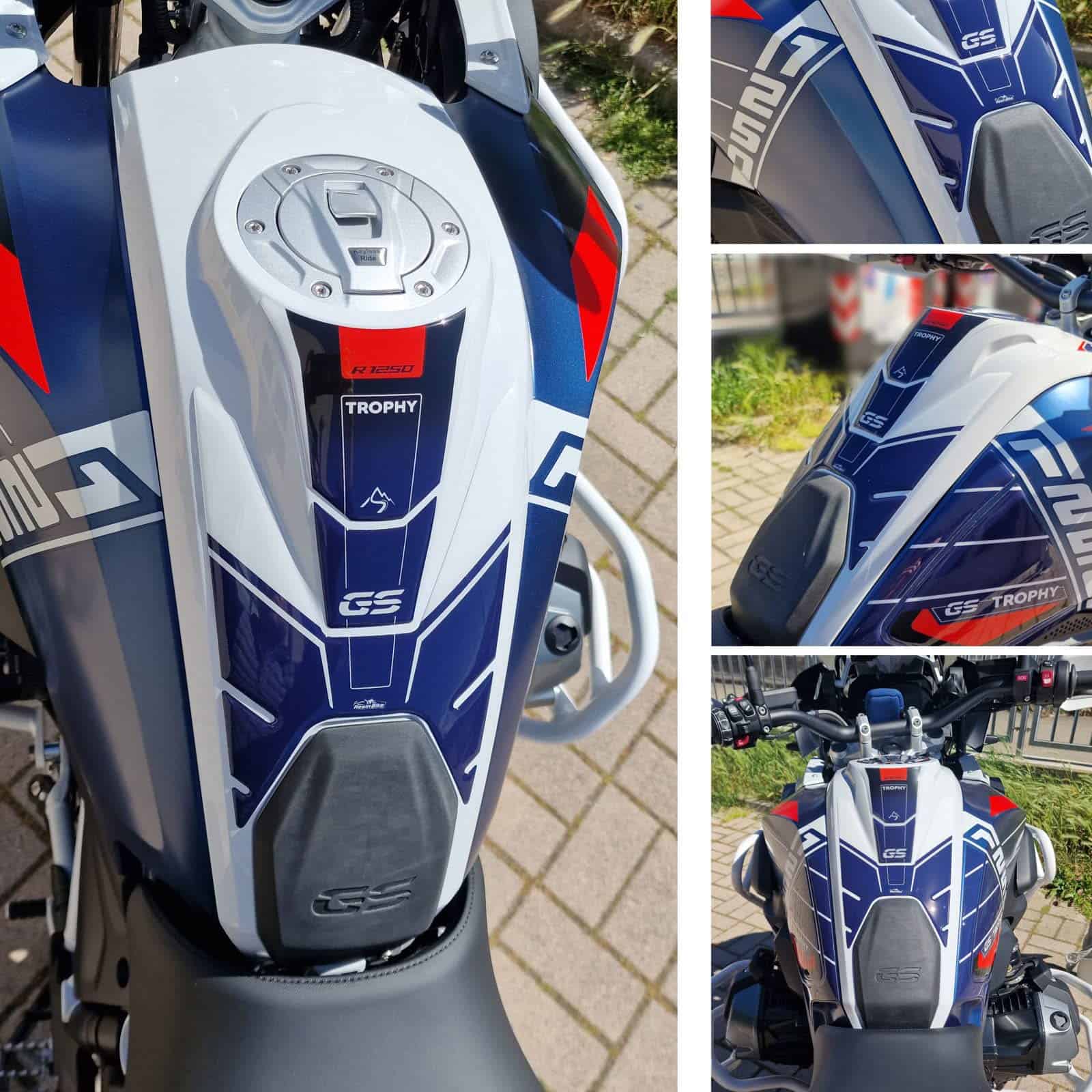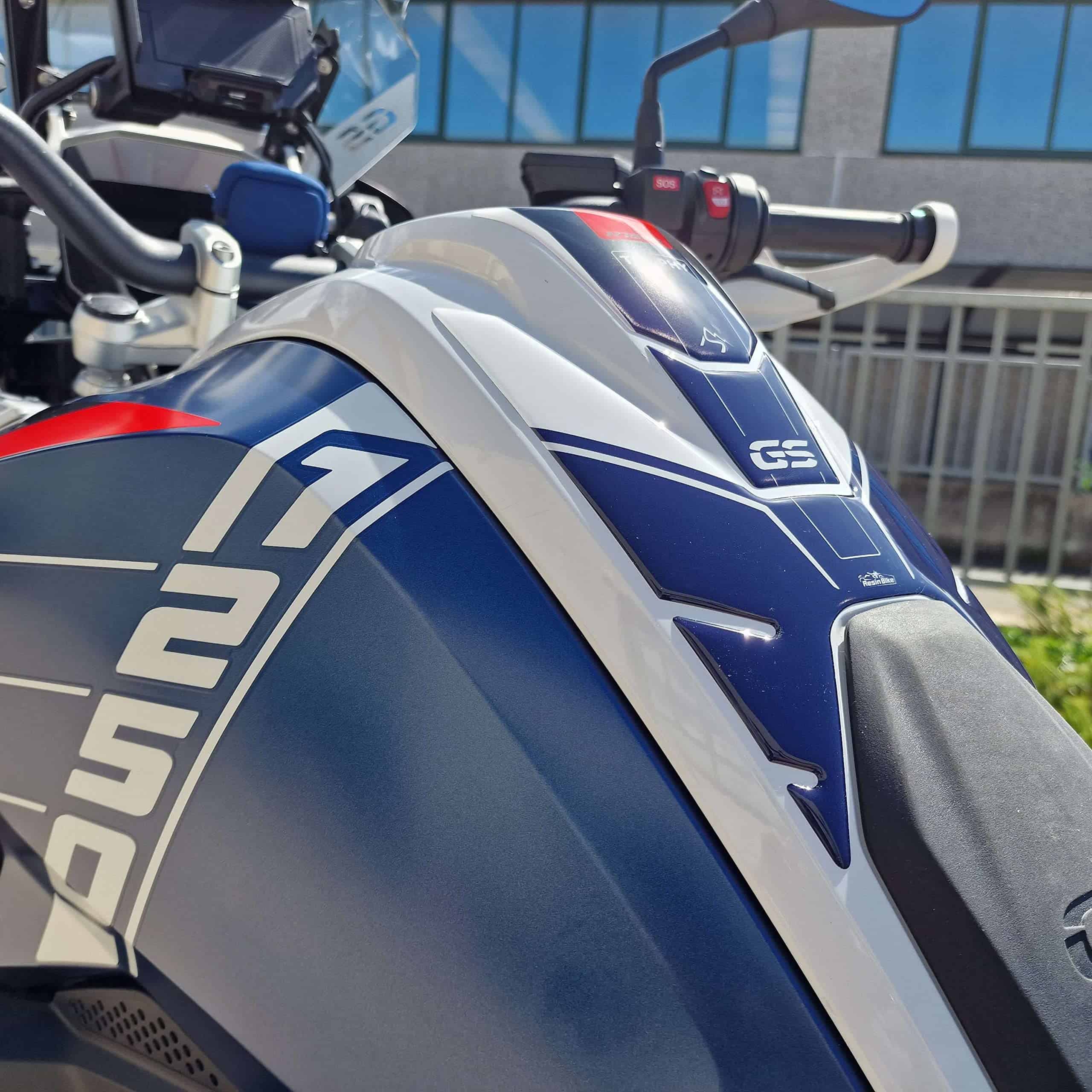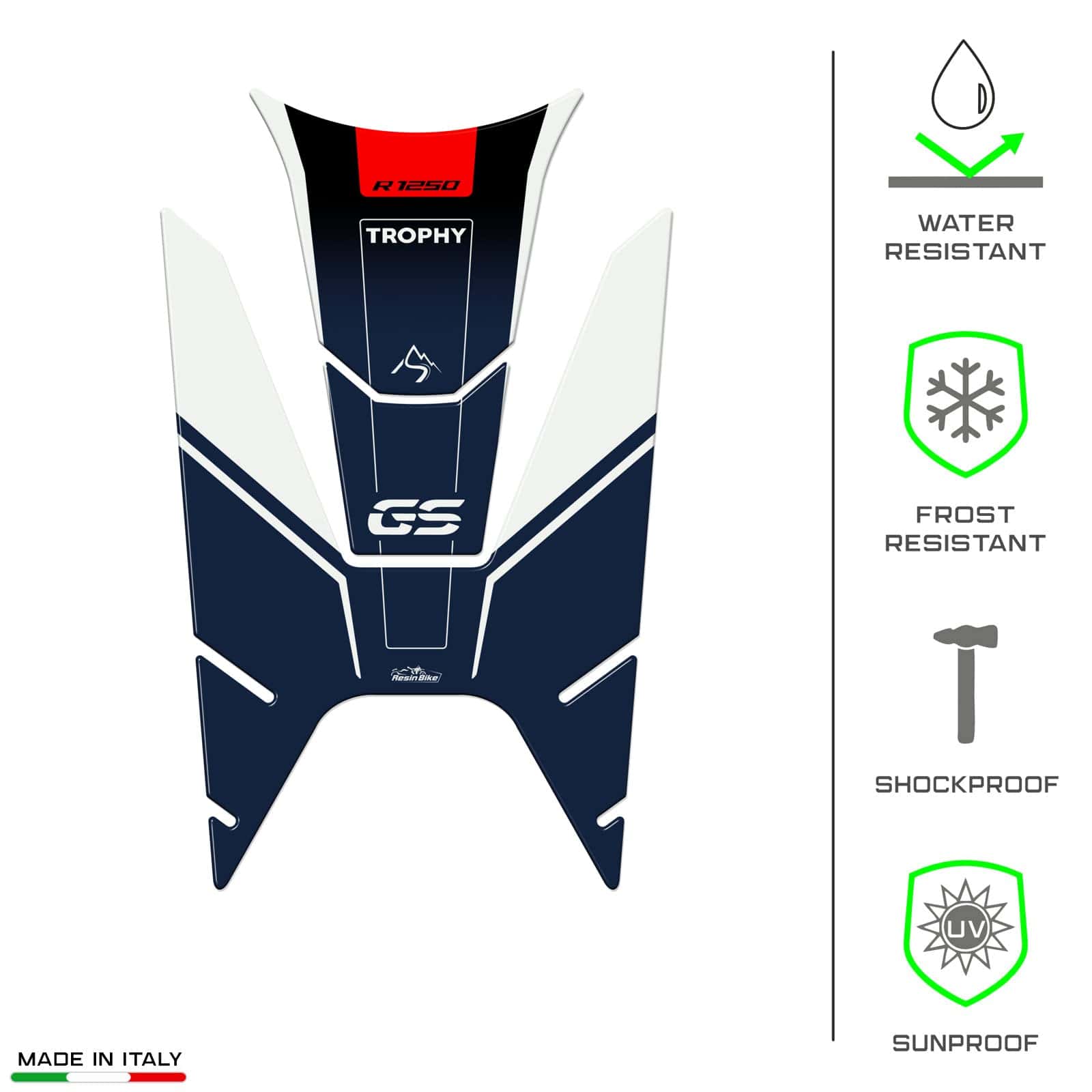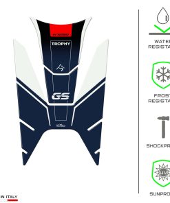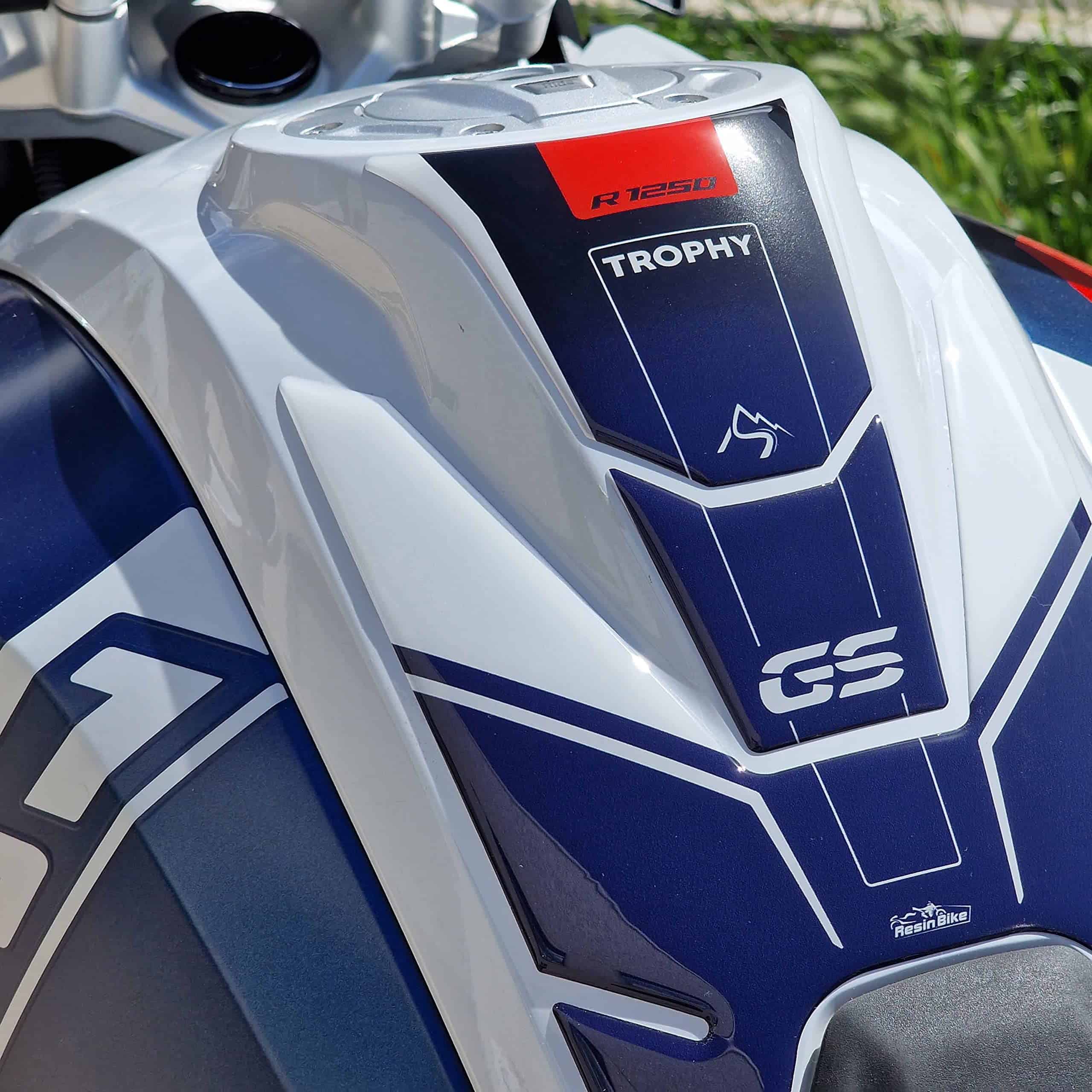 Calcomanías de moto 3D de resina compatibles con BMW R 1250 GS Trophy 2023. Protector de tanque Protecciones contra impactos y rasguños. Calcomanías de resina – Hechas en Italia. Todas las calcomanías de moto de Resin Bike son duraderas y HECHAS EN ITALIA, diseñadas y probadas para ofrecer un alto rendimiento, ideales para decorar y proteger tu moto de arañazos, golpes y clima. Las calcomanías de Resin Bike realzan la estética de tu moto con estilo y personalidad. Resin Bike es una empresa italiana especializada en la creación de llaveros, gráficos adhesivos de resina con efecto personalizado en 3D para proteger y decorar scooters, motos de carretera y motos de cross. El equipo de diseñadores gráficos, unidos por la pasión por las dos ruedas, diseña y crea las líneas modernas de Resin Bike compatibles con tu moto. Para ofrecerte lo mejor, Resin Bike utiliza técnicas de impresión de alta definición y de impresión digital a cuatro colores con colores brillantes de alta calidad que no se desvanecen con el tiempo gracias a un tratamiento especial por el cual la resina utilizada se convierte en un filtro contra los rayos UV. Para una buena adherencia del producto, recomendamos lavar las manos con jabón para evitar transferir grasa o suciedad. Limpie la superficie donde se aplicará el adhesivo con un paño suave, seco y limpio que no suelte residuos. En caso de suciedad persistente, es posible usar un spray común para limpiar vidrios o un desengrasante líquido. Finalmente, seque completamente la superficie y proceda con la aplicación del adhesivo. Manipule la calcomanía exclusivamente desde los bordes evitando tocar la parte adhesiva con las manos, aplique el adhesivo manteniéndolo perfectamente alineado con la forma de la moto para evitar acciones de pegado y desprendimiento que podrían comprometer la estanqueidad del pegamento con el tiempo. Recomendamos comenzar por un lado y eliminar suavemente cualquier burbuja de aire a medida que avanza hacia el lado opuesto