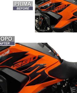 CALCOMANÍAS DE RESINA HECHAS EN ITALIA PARA TU MOTO. PRODUCTO NO ORIGINAL. Adhesivo protector de resina. Protecciones personalizadas hechas de resina con efecto 3D. ¡Calcomanías de resina 3D ideales para proteger y decorar tu moto! Todas nuestras calcomanías están hechas en Italia y están especialmente diseñadas y fabricadas para proteger tu moto de rayones, golpes y condiciones climáticas adversas. La impresión es de alta definición y los colores perduran con el tiempo sin desvanecerse fácilmente gracias a un tratamiento especial en el que la resina actúa como filtro contra los rayos UV. Para obtener una buena adherencia del producto, recomendamos lavar las manos con jabón para evitar transferir grasa o suciedad. Limpiar la superficie adhesiva con un paño suave, seco, limpio que no deje residuos. En caso de suciedad persistente, puedes usar un spray limpiador de cristales común o un limpiador líquido genérico. Finalmente, seque bien la superficie y aplique el adhesivo.