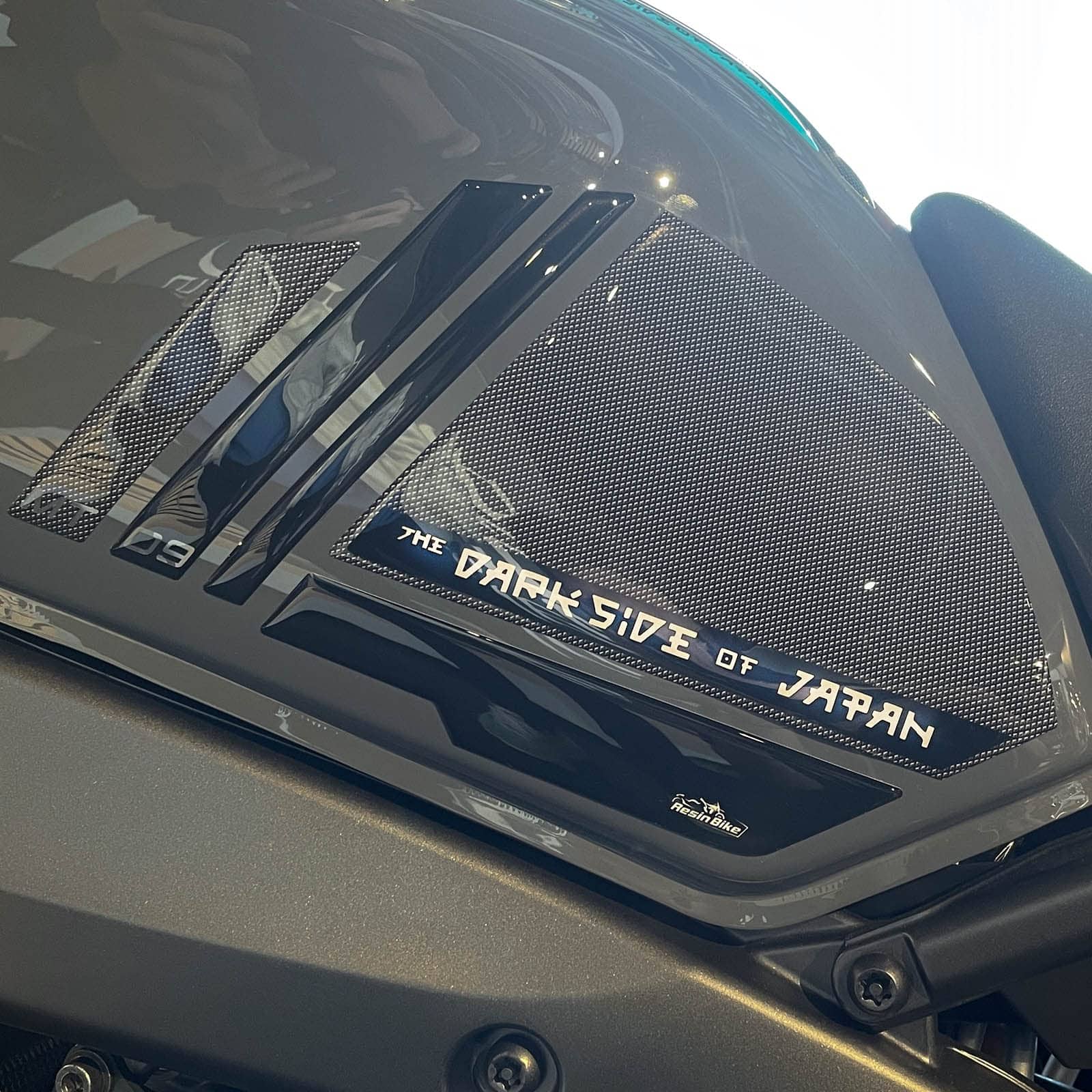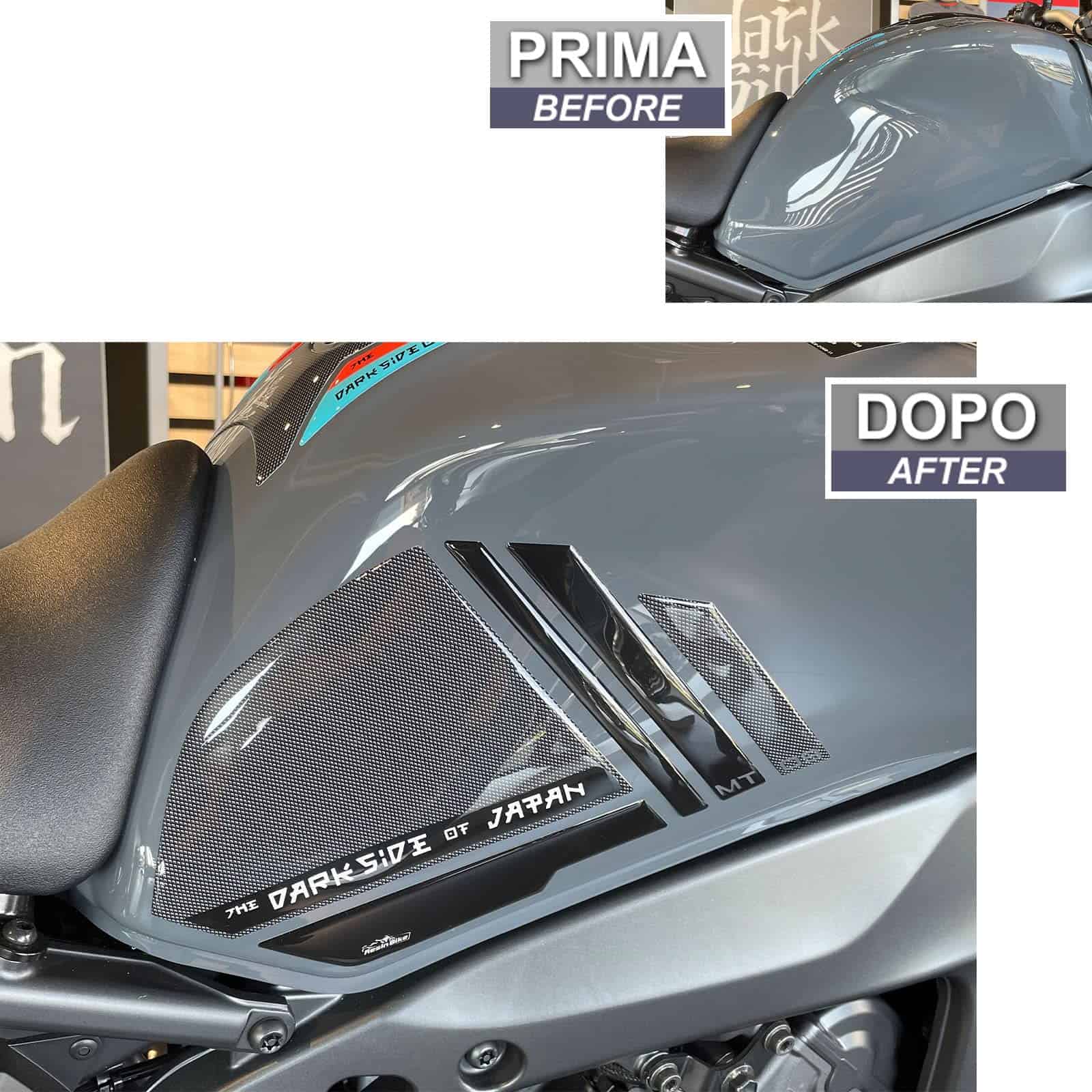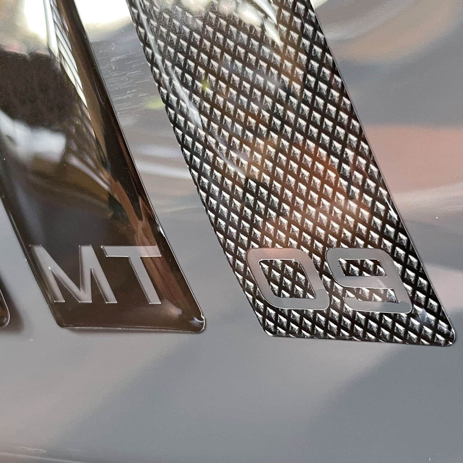 Calcomanías de moto de resina 3D compatibles con Yamaha MT-09 2022. Protegen tu tanque de combustible de impactos y arañazos, hechas en Italia por Resin Bike. Estas calcomanías están diseñadas para ofrecer un alto rendimiento y durabilidad, dando un toque de estilo y personalidad a tu motocicleta. Resin Bike, una empresa italiana especializada en accesorios para motos, utiliza técnicas de impresión de alta calidad y colores brillantes que no se desvanecen con el tiempo gracias a un tratamiento especial con resina que protege contra los rayos UV. Recomendamos limpiar bien la superficie antes de aplicar la calcomanía para asegurar una buena adhesión. Fáciles de aplicar y de ajuste perfecto, estas calcomanías son ideales para aquellos que desean proteger y decorar su moto con un toque de diseño único.