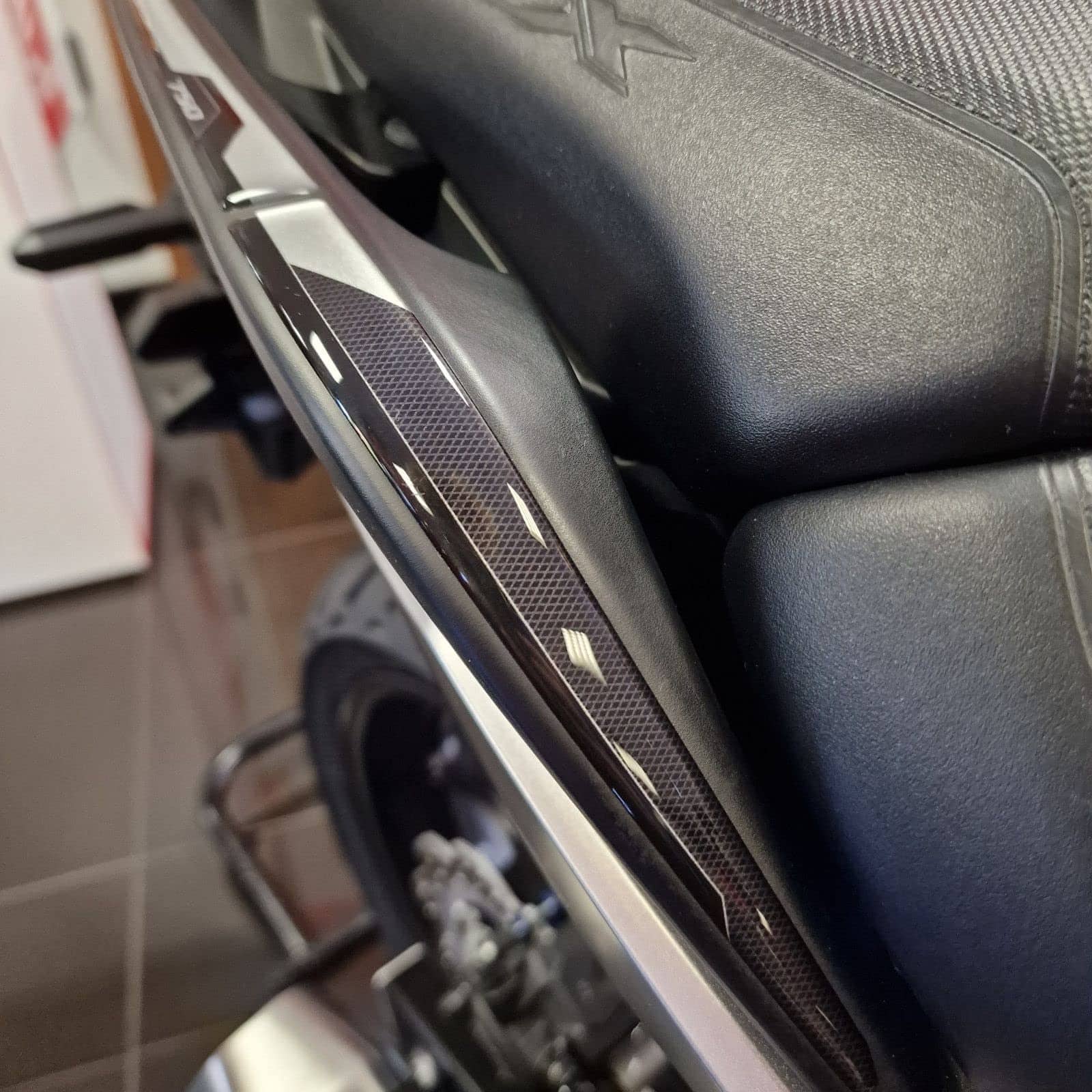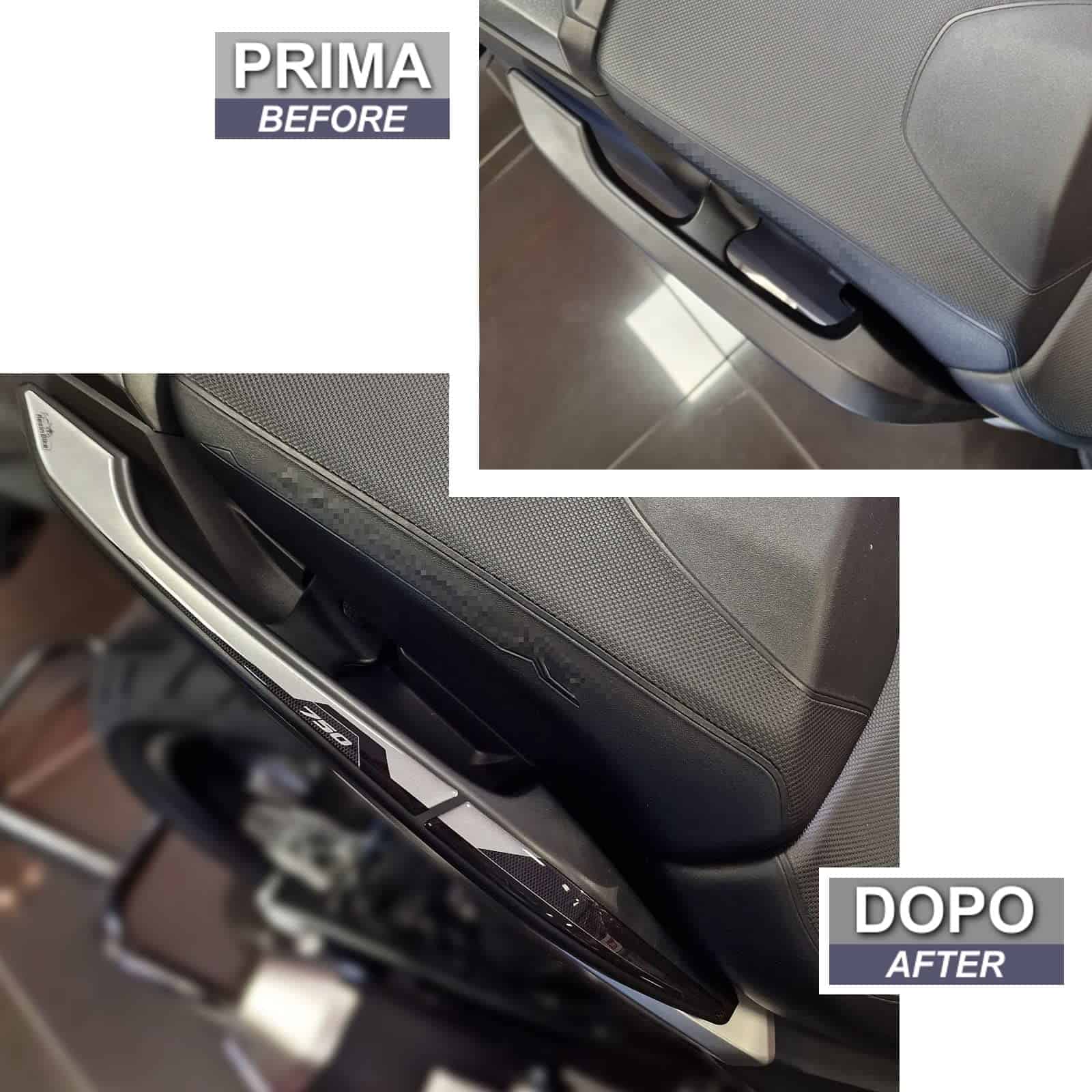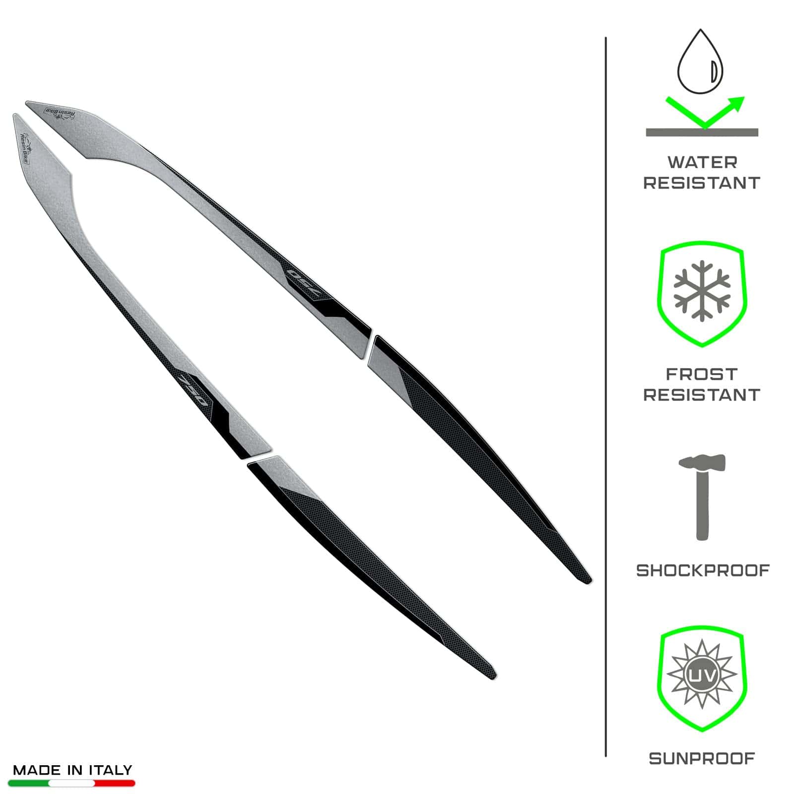 Calcomanías de Moto Resina 3D Compatible con Honda NC750X 2021-2023. Protecciones de Manijas del Pasajero contra Impactos y Rayones. Calcomanías de Resina – Hechas en Italia. Todas las calcomanías de moto Resina son duraderas y HECHAS EN ITALIA, diseñadas y probadas para ofrecer un alto rendimiento, ideales para decorar y proteger tu moto de rayones, golpes y condiciones climáticas. Las calcomanías de Resina Bike realzan la estética de tu moto con estilo y personalidad. Resina Bike es una empresa italiana especializada en la creación de llaveros, gráficos adhesivos de resina con efecto 3D personalizado para proteger y decorar scooters, motocicletas de calle y motocross. La empresa renueva constantemente sus creaciones para ofrecerte una amplia gama de accesorios de motocicleta de calidad con gráficos únicos. El equipo de diseñadores gráficos, unidos por la pasión por las dos ruedas, diseña y crea las líneas modernas de Resina Bike compatibles con tu moto. Para ofrecerte lo mejor, Resina Bike utiliza técnicas de impresión de alta definición y impresión digital en cuatro colores con colores brillantes de alta calidad que no se desvanecen con el tiempo gracias a un tratamiento especial por el cual la resina utilizada se convierte en un filtro contra los rayos UV. Para una buena adherencia del producto, recomendamos lavarse las manos con jabón para evitar transferir grasa o suciedad. Limpie la superficie donde se aplicará el adhesivo con un paño suave, seco y limpio que no libere residuos. En caso de suciedad persistente, es posible utilizar un spray común para limpiar vidrios o un desengrasante líquido. Finalmente, seque bien la superficie y proceda con la aplicación del adhesivo. Manipule la calcomanía exclusivamente por los bordes evitando tocar la parte adhesiva con las manos, aplique el adhesivo manteniéndolo perfectamente alineado con la forma de la moto para evitar acciones de pegado y despegado que podrían comprometer la estanqueidad del pegamento con el tiempo. Recomendamos comenzar por un lado y eliminar suavemente cualquier burbuja de aire a medida que avanza hacia el lado opuesto.