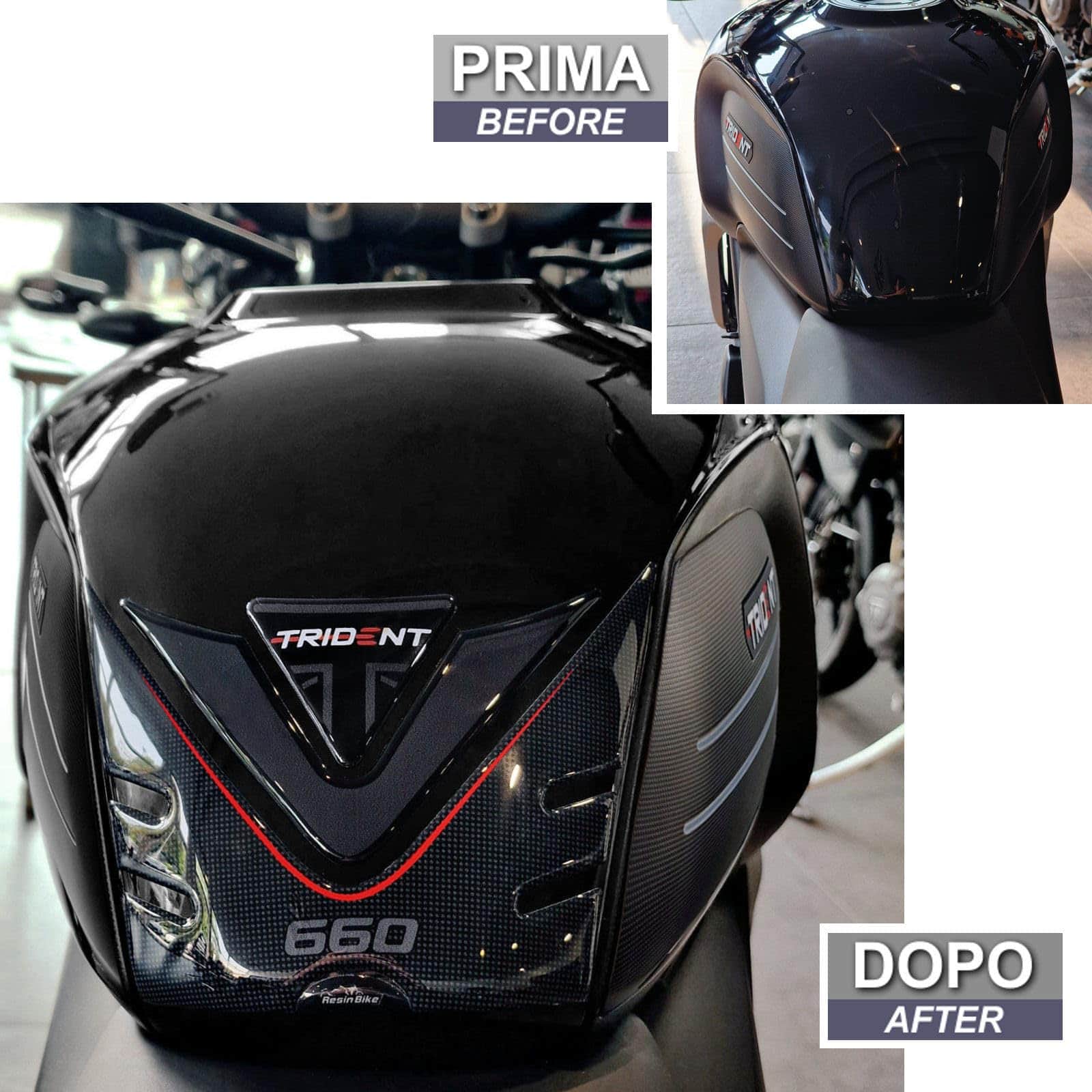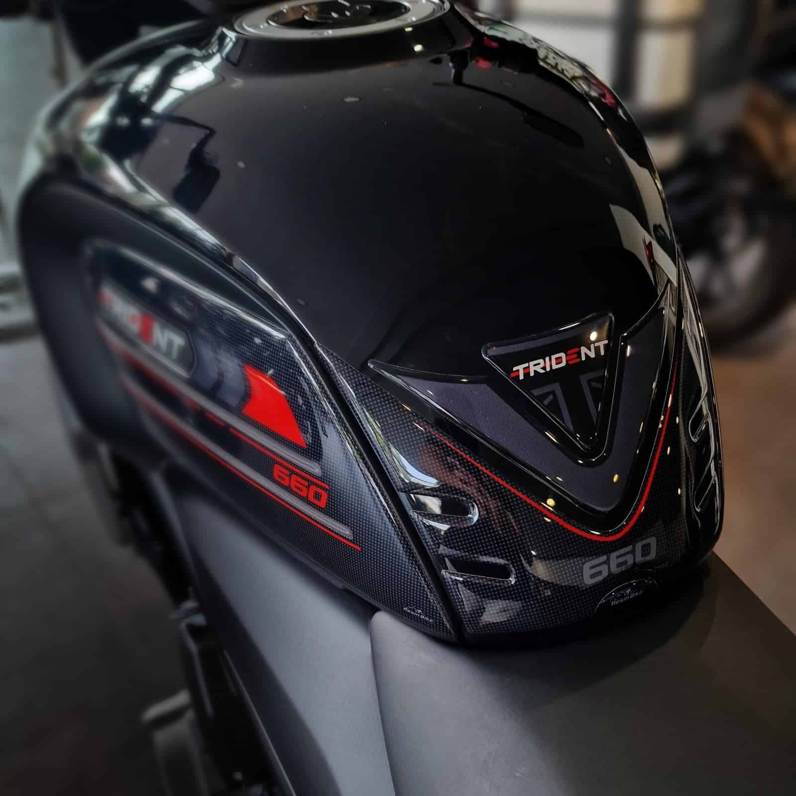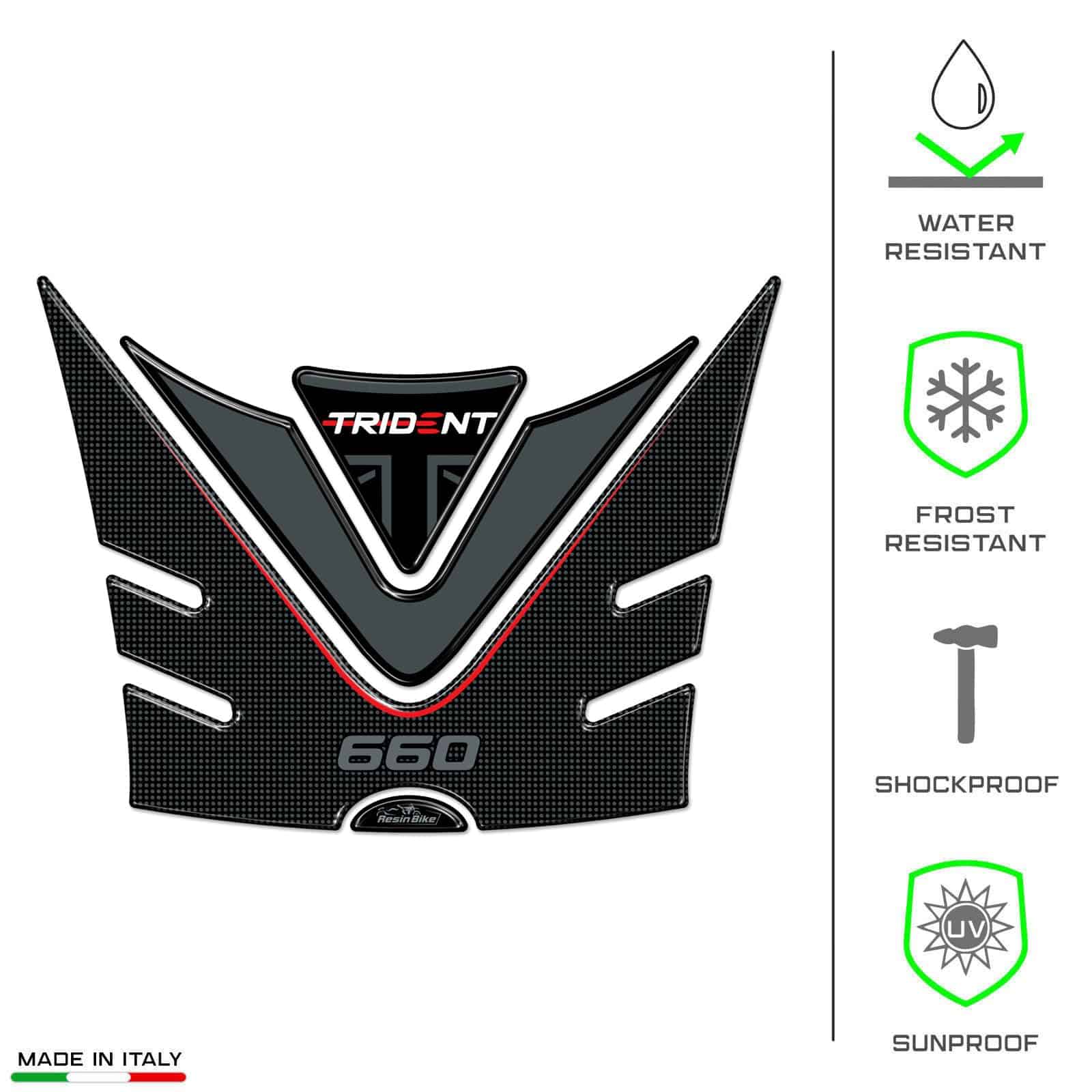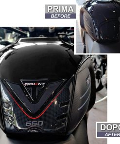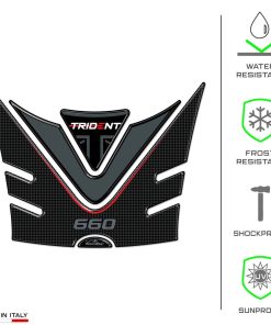 Calcomanías de motocicleta de resina compatibles con Triumph Trident 660 2021-2023. Protege el tanque de tu motocicleta con este kit de calcomanías de resina de alta calidad, diseñadas y probadas en Italia. Estas calcomanías no solo protegen tu moto de arañazos y golpes, sino que también la decoran con estilo y personalidad. La empresa italiana Resin Bike se especializa en la creación de accesorios de motocicleta de calidad con gráficos únicos y modernos para satisfacer a los amantes de las dos ruedas. Con técnicas de impresión de alta definición y colores brillantes que resisten el paso del tiempo, estas calcomanías mantendrán su aspecto original durante mucho tiempo. Su fácil aplicación y ajuste perfecto hacen que sea un accesorio imprescindible para cualquier amante de las motos que desee proteger y personalizar su vehículo con un toque italiano de calidad.
