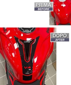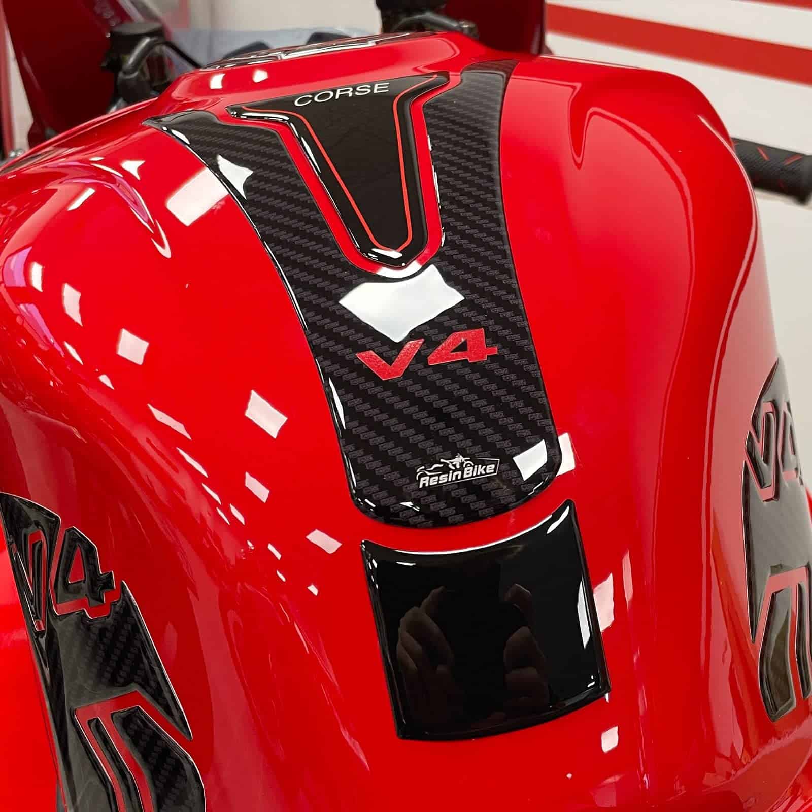 Calcomanías de motocicleta en 3D de resina compatibles con Ducati Panigale V4 y V4S 2018-2022. Proteja su tanque de gasolina con estilo y personalidad con las calcomanías de Resin Bike. Hechas en Italia, estas calcomanías están diseñadas y probadas para ofrecer un alto rendimiento, protegiendo su moto de rayones, golpes y condiciones climáticas. Resin Bike es una empresa italiana especializada en la creación de llaveros, gráficos adhesivos de resina con efecto 3D personalizado para decorar y proteger scooters, motocicletas de carretera y motocicletas de cross. Su equipo de diseñadores gráficos, apasionados por las dos ruedas, crea constantemente nuevas líneas de productos para ofrecer una amplia variedad de accesorios de motocicleta de calidad con gráficos únicos. Para garantizar la mejor calidad, Resin Bike utiliza técnicas de impresión de alta definición y una impresión digital a cuatro colores con colores brillantes que no se desvanecen con el tiempo gracias a un tratamiento especial que protege contra los rayos UV. La aplicacion de estas calcomanías es sencilla, siguiendo las instrucciones recomendadas por Resin Bike para una buena adherencia y durabilidad. Decore y proteja su moto con las calcomanías de Resin Bike, diseñadas para ofrecer estilo y rendimiento duradero.