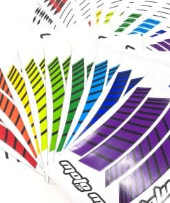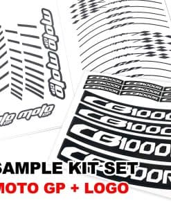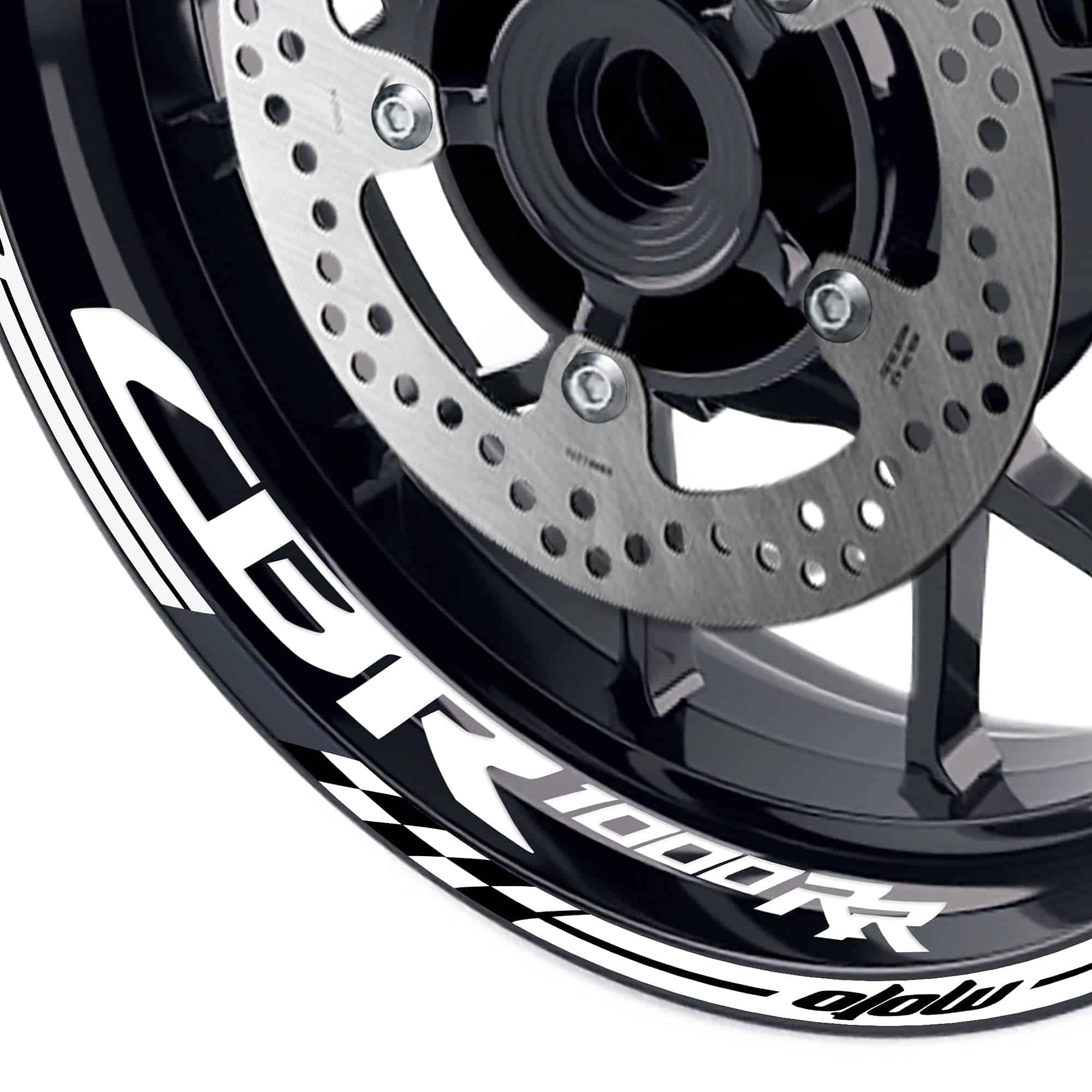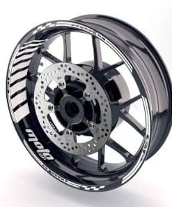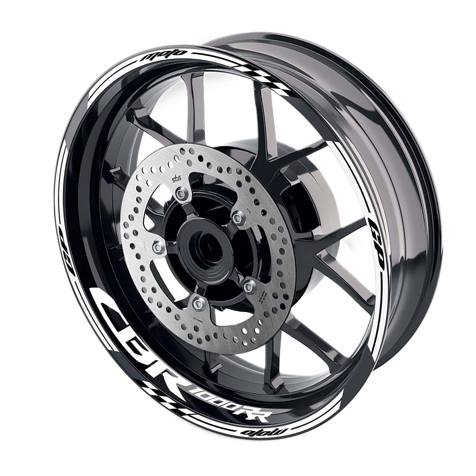 KIT COMPLETO DE CALCOMANÍAS DE RAYAS PARA LLANTAS DE 17 PULGADAS AA02 PARA RUEDAS DELANTERAS Y TRASERAS — Estilo de Cinta Exterior para Borde Interior con Modelo de Moto