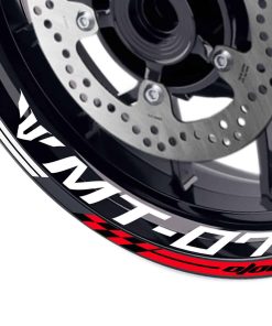 Calcomanías de rayas para llantas de 17 pulgadas MC MOTOPARTS. Decora tu MT07 2018-2020 con estas calcomanías de rayas vibrantes y llamativas. El juego incluye 16 piezas de rayas GP y 4 piezas de calcomanías para llantas delanteras y traseras, además de 13 piezas de calcomanías del modelo de la bicicleta. Estas calcomanías están hechas de material de alta calidad que es seguro para el lavado de autos y resistente a los elementos. Son removibles y no dejan marcas, lo que las hace ideales para personalizar tu bicicleta sin comprometer su apariencia. ¡Haz bricolaje con tu bicicleta y dale un nuevo aspecto con estas calcomanías de rayas rojas estilo AA01!