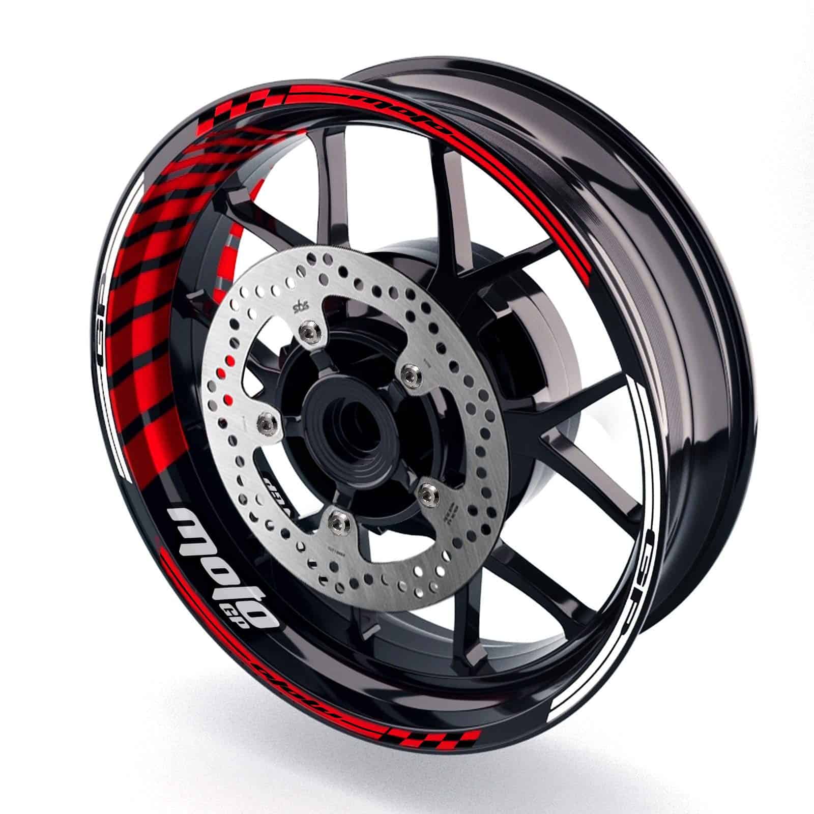 Calcomanías de vinilo brillante para llantas de 17 pulgadas MC MOTOPARTS AA02 Rojo. Este kit de calcomanías es compatible con una variedad de modelos de motocicletas, incluyendo CBR600RR 2003-2020, CBR650F 2014-2018, CBR1000RR 2004-2019, CBR1000RR-R Fireblade SP 2020-2021, CBR600 F F2 F3 F4 F4i 1991-2007, CBR650F 2014-2018, CBR650R 2019-2020, y CBR1000RR 2004-2024. Las calcomanías están hechas de material de alta calidad que es seguro para lavados de auto y limpiadores de alta presión. Son resistentes a condiciones climáticas adversas, rayos UV, gasolina, aceite, combustibles, roturas, rayones y grietas. Las calcomanías son removibles sin dejar marcas y son fáciles de instalar para decorar tu motocicleta. El kit incluye 16 piezas de rayas GP, 4 piezas de calcomanías para la llanta delantera y trasera, y 13 calcomanías de modelos de motocicletas.