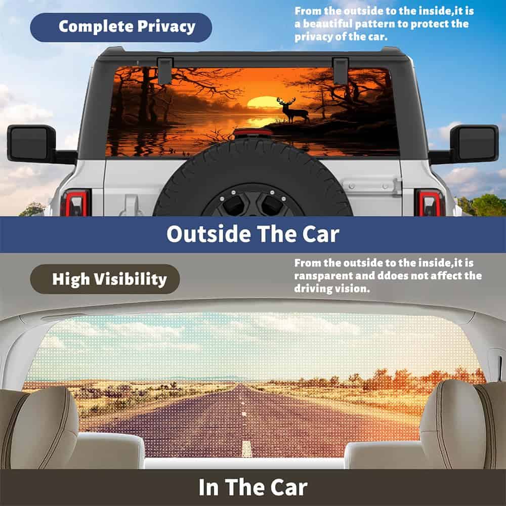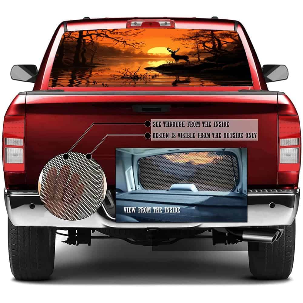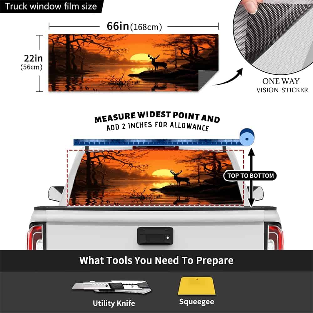 Nuestra calcomanía universal para ventanas traseras de camiones tiene un tamaño de 66″ x 22″, mide el tamaño de la ventana de tu camioneta antes de ordenar, se puede cortar fácilmente a la forma exacta que necesitas. Se ajusta a la mayoría de las camionetas pickup, SUVs, ventanas traseras de coches y hace que tu auto se vea hermoso. Si necesitas un tamaño diferente para tu vehículo, te daremos el tamaño que necesitas sin costo adicional. Cada una de nuestras calcomanías está diseñada para proporcionar una cobertura completa para la ventana trasera de una camioneta.