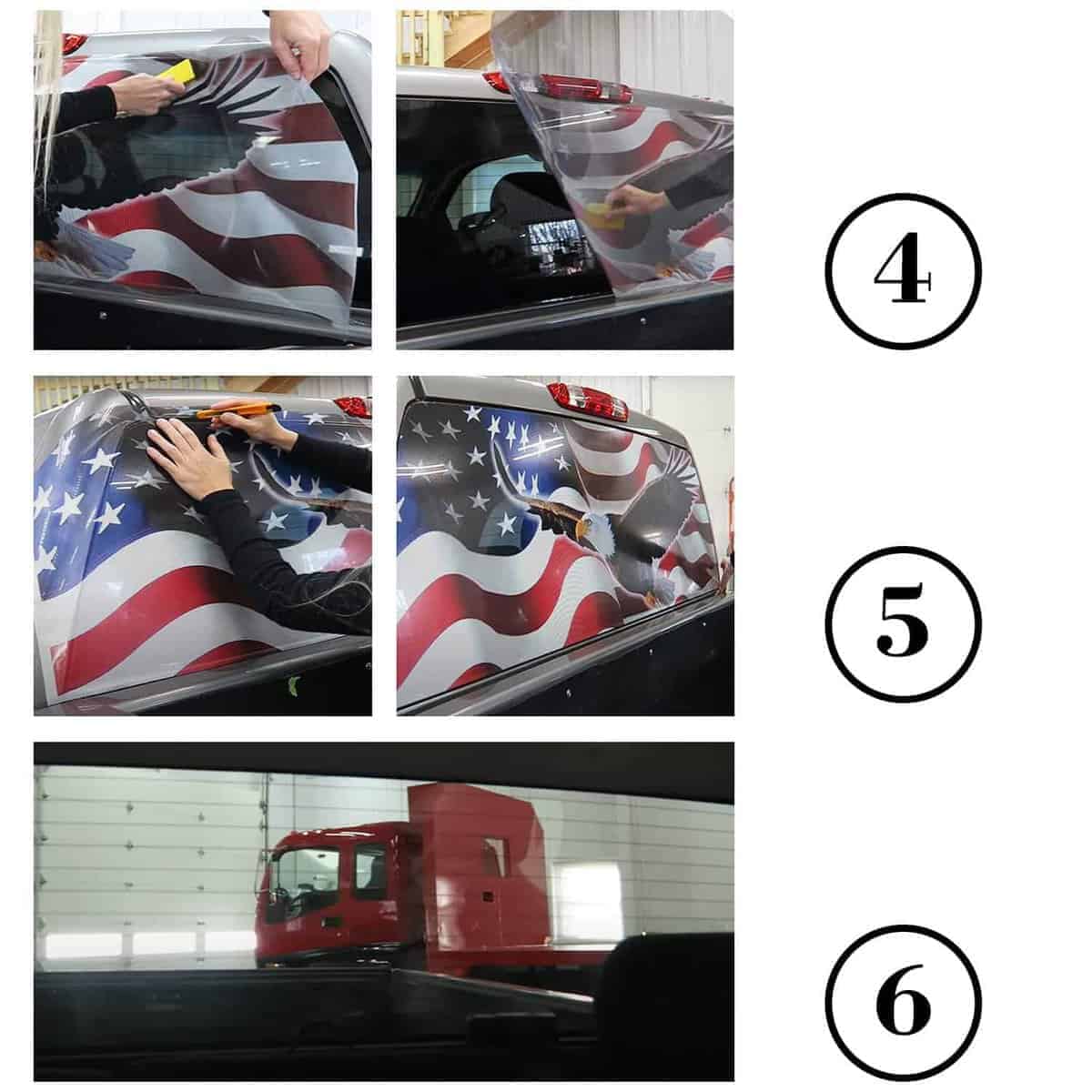 Puedes ver a través de la calcomanía dentro del camión.
