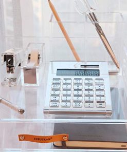 Calculadora de Acrílico EXPUTRAN con Soporte, Batería y Energía Solar Híbrida Calculadora Básica de 12 Dígitos Pantalla LCD, Accesorios de Oficina para Casa y Oficina (Plata). La calculadora de EXPUTRAN cuenta con una fuente de energía doble de energía solar y batería de respaldo, lo que permite un uso sin preocupaciones en cualquier condición de luz. Además, la calculadora tiene una función de auto apagado que la apaga automáticamente después de 5 minutos sin operación, lo que ahorra energía. Su diseño ergonómico incluye un soporte de acrílico inclinado a 30 grados para un ángulo de visión conveniente y cómodo durante la operación. La calculadora presenta una pantalla LED grande y clara que facilita la lectura de los dígitos. Tanto la calculadora como el soporte están equipados con pies antideslizantes para garantizar la seguridad y estabilidad al usarlos en cualquier superficie. El diseño único de acrílico transparente con estilo moderno plateado hace que esta calculadora sea una adición elegante a su lugar de trabajo. EXPUTRAN ofrece kits completos de accesorios de escritorio en tono dorado y plateado para adaptarse a diferentes temas para su oficina y hogar. El paquete incluye una Calculadora de Acrílico y un Soporte de Acrílico. Añade atractivo instantáneo a tu espacio de trabajo con estos accesorios estéticos y funcionales para tus necesidades diarias.
