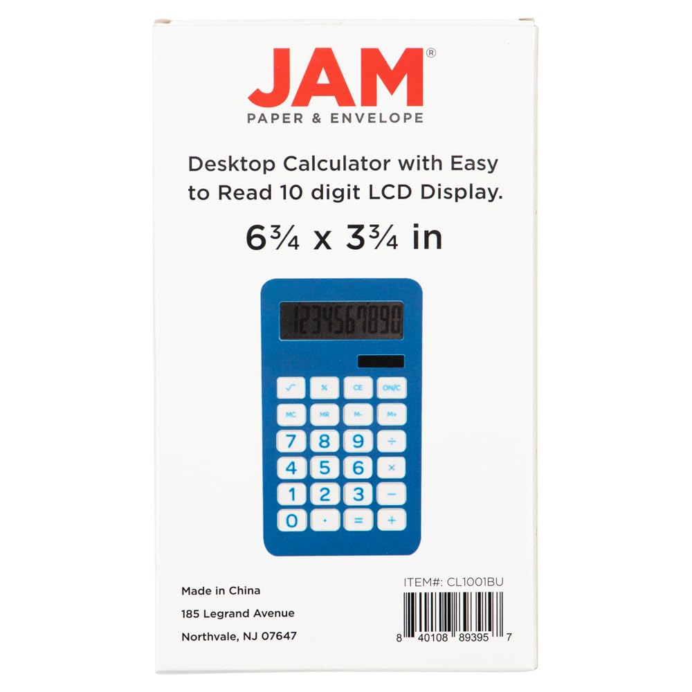 Explora el mundo de los cálculos simples con un toque de color utilizando la Calculadora de escritorio azul de JAM Paper con pantalla LCD de 10 dígitos. Esta calculadora elegante y duradera, que mide cómodamente 3 3/4 x 6 3/4 pulgadas, mejora la estética de tu escritorio mientras hace que las operaciones matemáticas sean pan comido. Su diseño excepcional cuenta con una clara pantalla LCD de 10 dígitos que garantiza no más entrecerrar los ojos para ver números borrosos. El vibrante tono azul agrega una pizca de personalidad a tu espacio de trabajo. Ideal para uso en casa, oficina o escuela, la calculadora de JAM Paper es realmente una fusión creativa de funcionalidad y estilo. Eleva tus tareas matemáticas con esta herramienta versátil hoy. Se vende en paquete de 10 unidades.