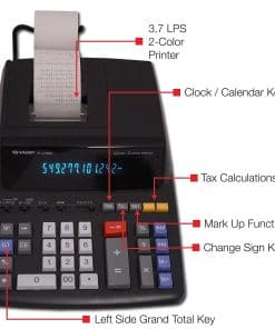 Velocidad de impresión rápida agiliza el flujo de trabajo. Cálculos de precios y impuestos fáciles. Muestra e imprime la fecha y la hora. Dimensiones: 3.13″ de alto x 8.75″ de ancho x 12.88″ de profundidad. Simplifique cálculos financieros con funciones de cálculo de impuestos, costo, venta, margen, marcado y contador de artículos. La pantalla inclinada es fácil para los ojos. Alimentado por cualquier toma de corriente estándar, eliminando la necesidad de baterías caras. Los interruptores decimales, de redondeo, porcentaje, de cálculo constante, de doble cero y de total general lo ayudarán a resolver una variedad de problemas matemáticos. Viene en negro.