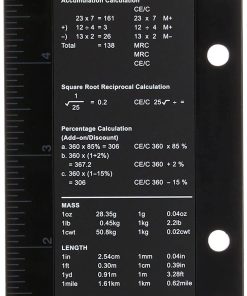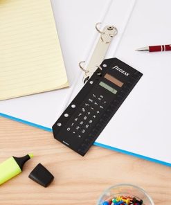 Calculadora Filofax ideal para tamaños Personal, A5 y Deskfax. Funciona con energía solar y cuenta con apagado automático para mayor durabilidad. Incluye regla métrica e imperial, así como tablas de conversión en el reverso. Perfecta para uso en la oficina o en cualquier escenario donde se requieran cálculos rápidos y precisos.