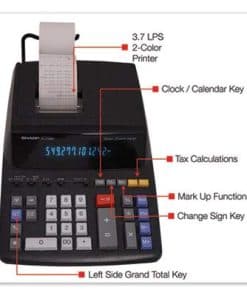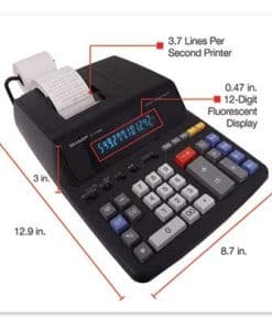 Calculadora de 12 dígitos perfecta para uso diario o moderado. Pantalla fluorescente grande para una visualización fácil. Velocidad de impresión de cinta de 3.7 líneas por segundo. Estilo negro contemporáneo que complementa cualquier decoración de escritorio moderna.