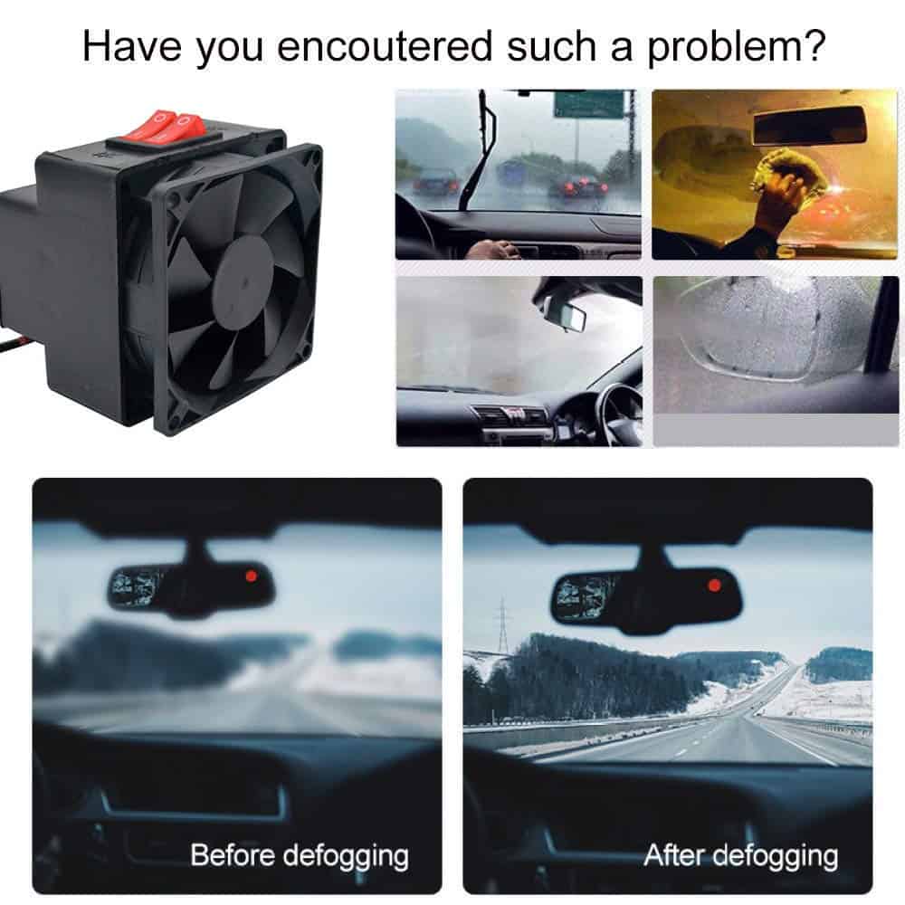 1. Potente Calentamiento El calentador de coche de 12V 150W está diseñado para la rápida eliminación de heladas y niebla en el parabrisas y ventanas del vehículo con bajo ruido, aumenta efectivamente la temperatura del aire dentro del coche, mejora la seguridad de la visión de conducción.