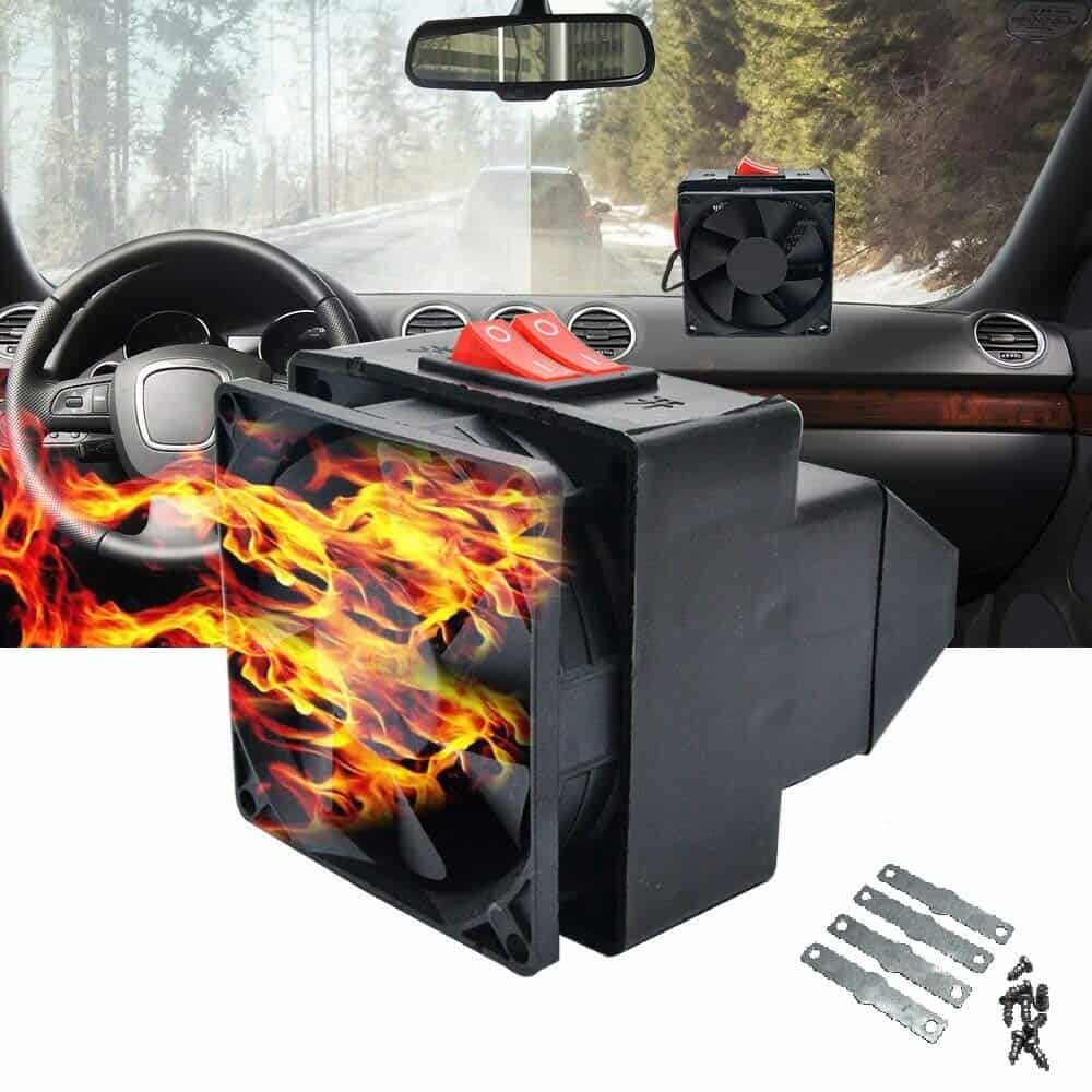 4. Instalación Fácil Este ventilador eléctrico calefactor para coche viene con todos los herrajes de montaje necesarios, lo que facilita la instalación en su vehículo. Puede montarse en el tablero, debajo del asiento, o en cualquier otro lugar que prefiera, un mejor compañero para su viaje en coche.