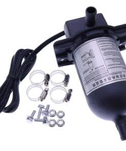 Líquido de Calefacción: Refrigerante del motor. Potencia de Calefacción: 0.5KW, 1.0KW, 1.5KW. Rango de Voltaje: 120v. Elemento Calefactor: Incoloy 800. Carcasa: IP41. Capacidad de Líquido: 0.11 gal (0.013L). Presión Máxima: 90 psi (620 kPa). Plomería de Entrada/Salida: 0.625 (15.9mm). Material del Tanque: Polifenilsulfida PPS.