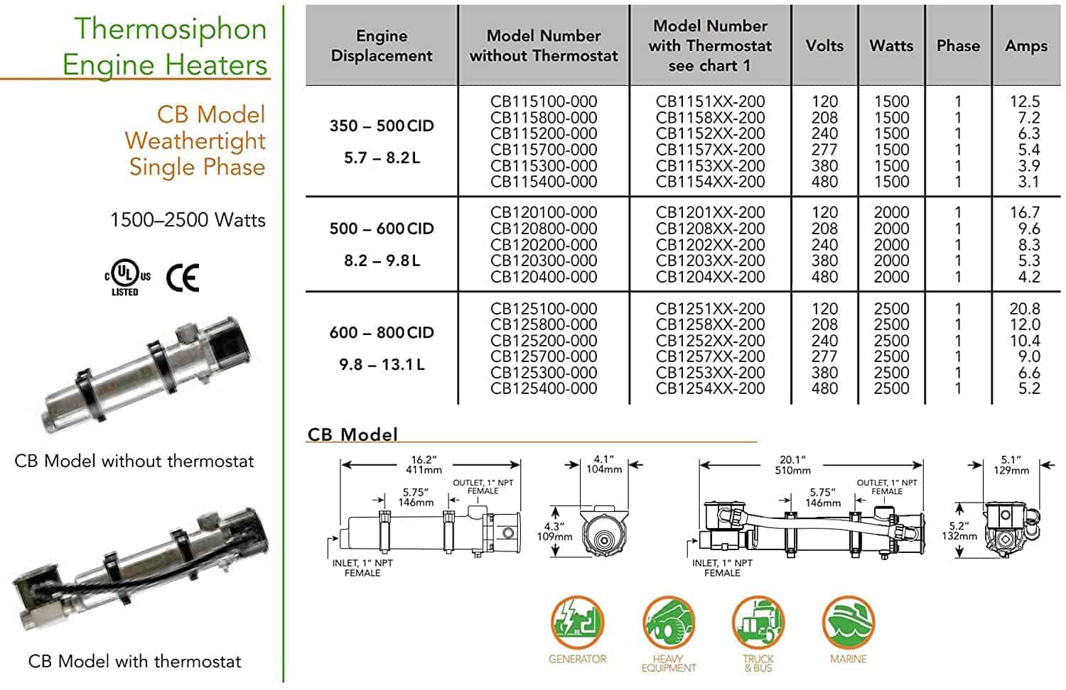 Calentador de motor Thunder Parts HOTSTART CB115810-200 –