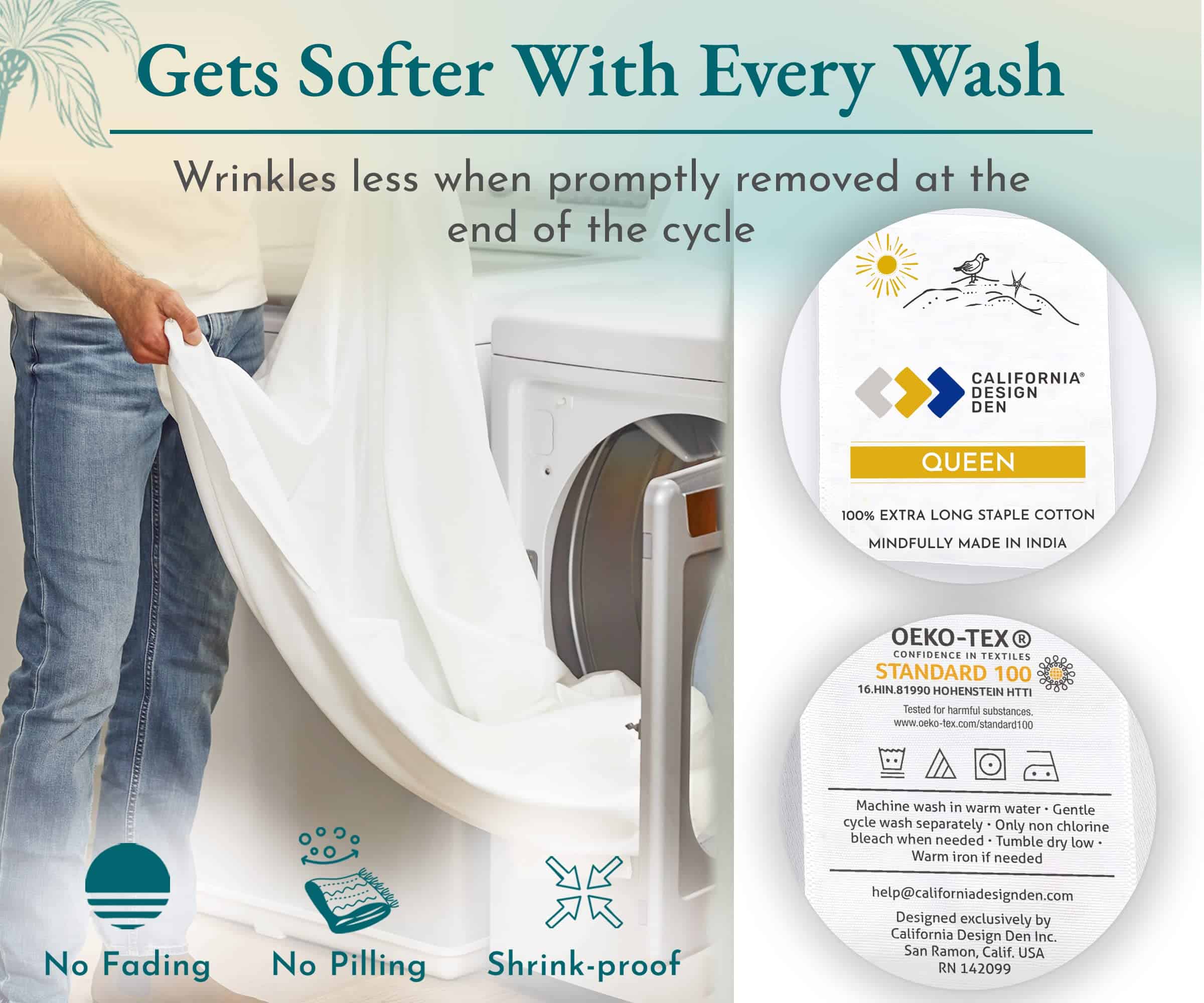 California Design Den – Juego de sábanas Queen de algodón