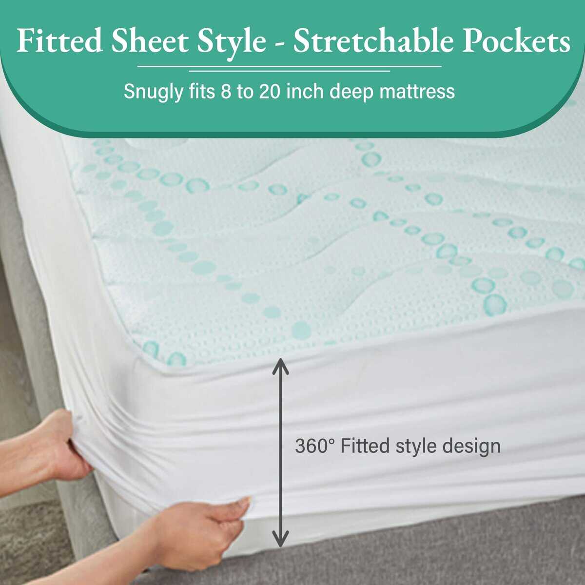 Transforma tu cama con comodidad y soporte con nuestro protector de colchón de bolsillo profundo. Mejora tu sueño sin tener que comprar un colchón nuevo. Mientras que los toppers añaden altura y amortiguación, nuestro protector de colchón queen añade una lujosa capa de suavidad sin aumentar la altura del colchón, y extiende la vida útil de tu colchón existente. Fabricado con materiales premium, nuestro protector de colchón refrigerador reina equilibra la comodidad y la durabilidad, ofreciendo a tu cama una sensación de hotel de lujo a una fracción del costo.