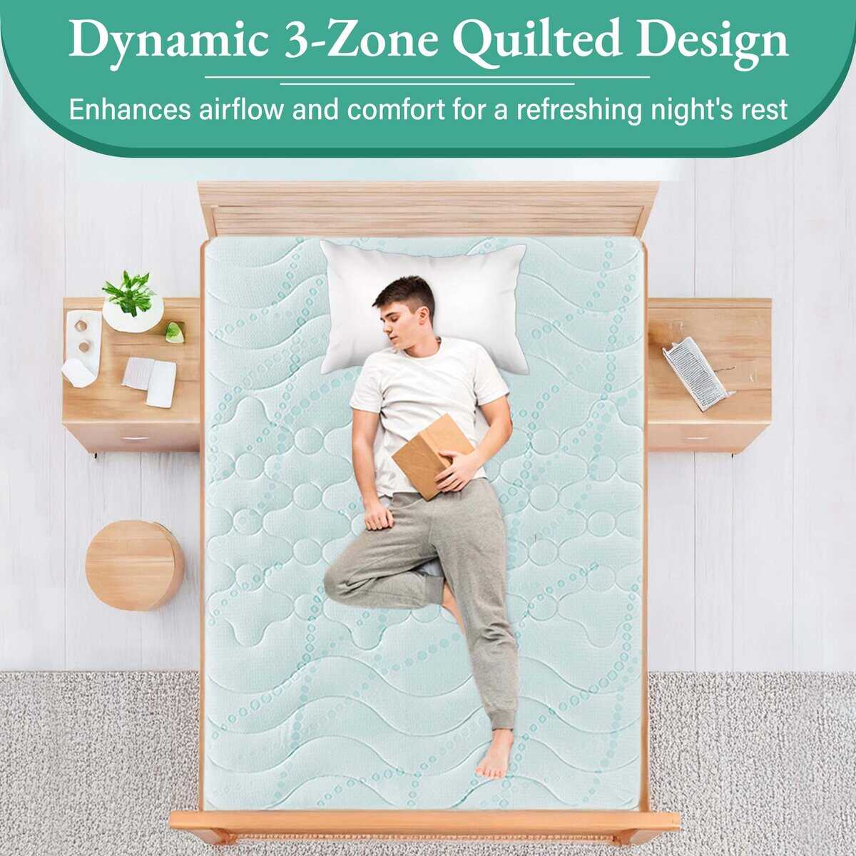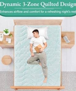 Experimenta el soporte ergonómico de 3 zonas con nuestro diseño exclusivo. Nuestro protector de colchón presenta un acolchado ondulado en la parte superior e inferior y acolchado de nube en el centro para prevenir el hundimiento y ofrecer un soporte óptimo. Certificado Oekotex Standard 100, nuestro protector de colchón es seguro y suave en tu piel para una comodidad duradera durante toda la noche. Se adapta a todos los tipos de colchones, incluidos viscoelásticos, de látex y de muelles, garantizando una experiencia de sueño personalizada. Lavable a máquina para un mantenimiento sencillo y conveniente.