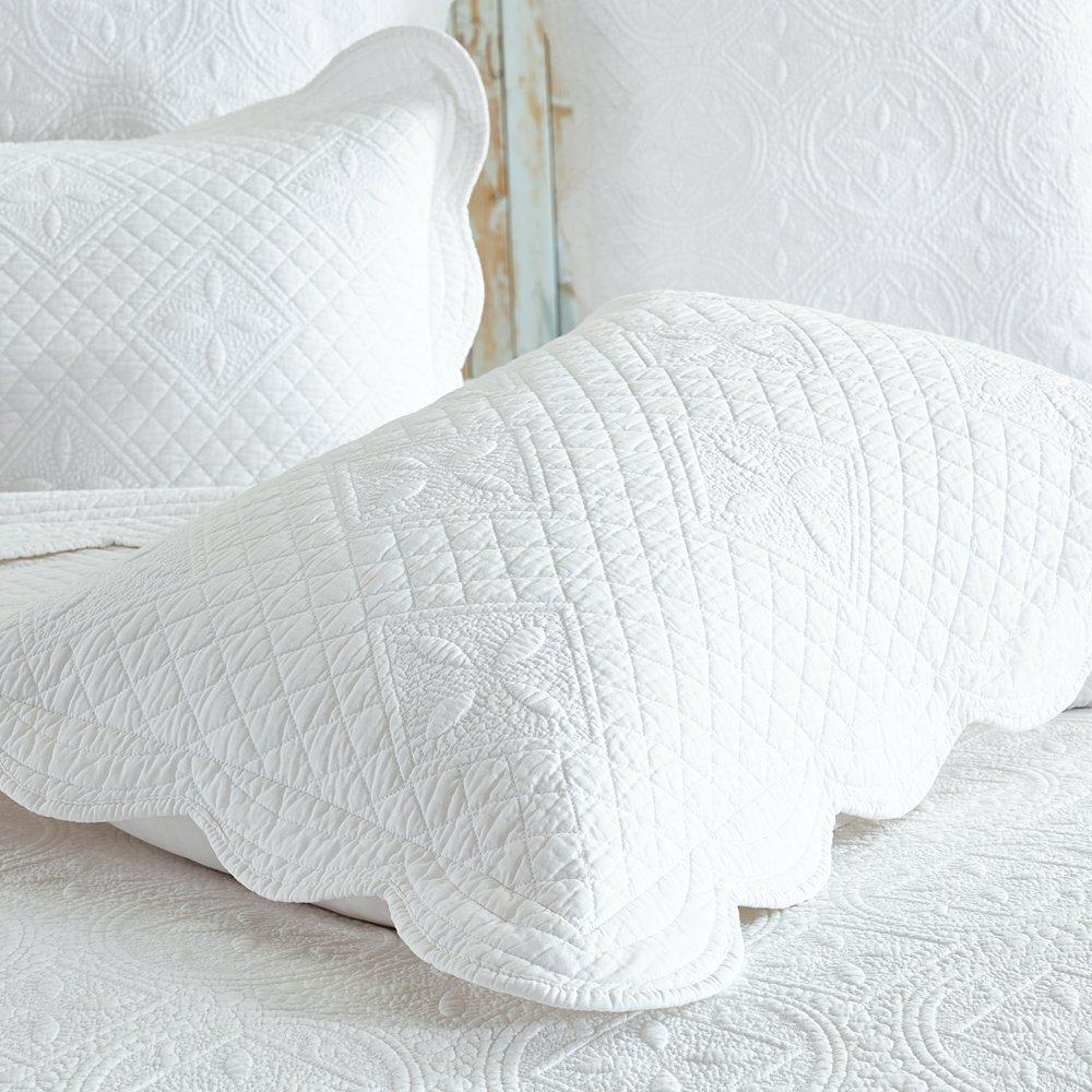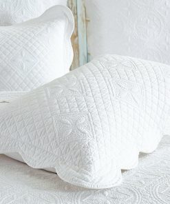 Esta funda de almohada está hecha de tela de algodón puro de color sólido y está decorada con patrones acolchados complejos realizados con máquinas computarizadas. Los hermosos patrones de flores cuidadosamente colocados en varias formas geométricas le dan un aspecto elegante y moderno a tu cama.