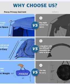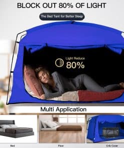 La cama con dosel portátil de privacidad es la solución perfecta para crear un ambiente cómodo y seguro para dormir tanto para niños como para adultos. Con una opacidad del 90%, bloquea la luz de manera efectiva mientras permite una excelente transpirabilidad gracias a sus ventanas de malla amplias. Su diseño 360 grados de privacidad garantiza un espacio personal tranquilo y relajante. La tienda de dormir se puede montar y desmontar fácilmente, y su tamaño portátil la hace ideal para llevar a cualquier lugar. Ya sea en casa, en una fiesta al aire libre o de viaje, esta cama con dosel proporciona confort y privacidad en cualquier lugar. ¡No esperes más y hazte con la tuya!