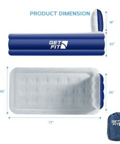 4. Diseño Compacto: Gracias a su diseño compacto y fácil de usar, el colchón de aire Get Fit permite una configuración sin complicaciones cuando lo necesitas. Es ideal para invitados, viajes de campamento, mudanzas a tu dormitorio o para usarlo tú mismo en casa. Un colchón de aire es una excelente opción portátil para una variedad de circunstancias, convirtiendo cualquier espacio en una cómoda habitación adicional, lo que lo convierte en un producto versátil. También incluye una bolsa de transporte amigable para los viajes para un empaque y transporte sencillos, así que llévalo contigo a donde vayas.