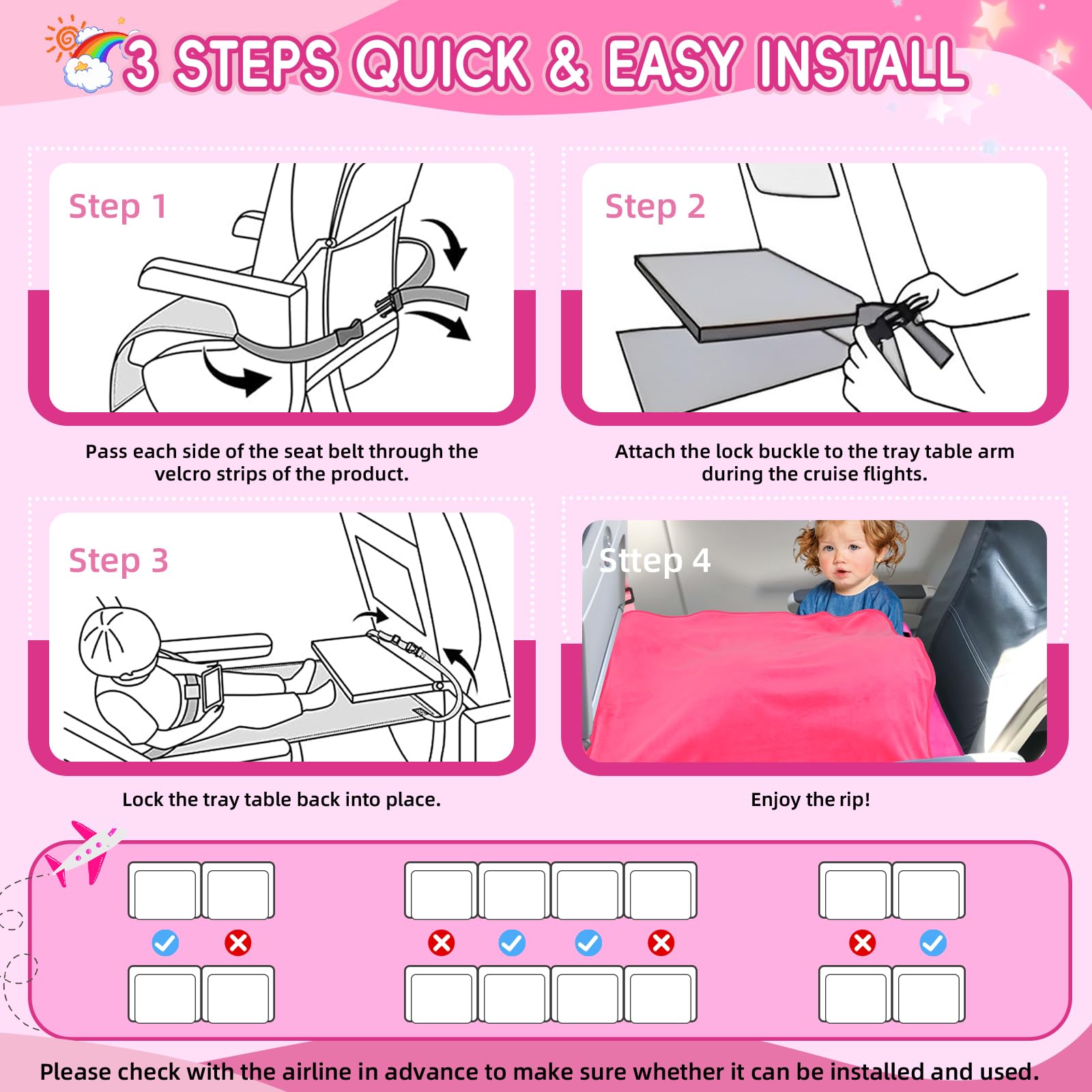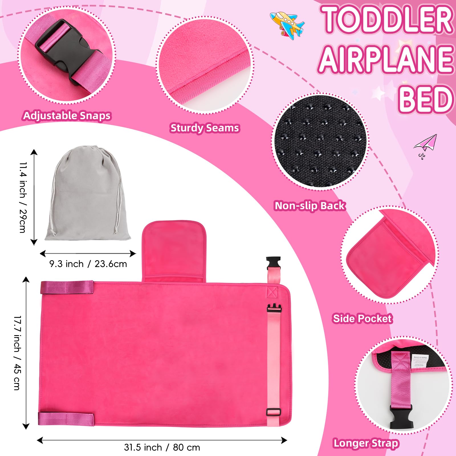 5. Notas: Consulta con tu aerolínea antes de usar. Es ideal para asientos de ventana o medio con bandejas. Instala después de despegar para un vuelo sin complicaciones y cómodo.