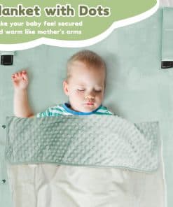 2. Manta desmontable: El extensor de asiento de avión para niños viene con una manta desmontable para evitar resfriados durante los vuelos. Con diseño de lunares, haz que tu bebé se sienta seguro y cálido como en los brazos de su madre.
