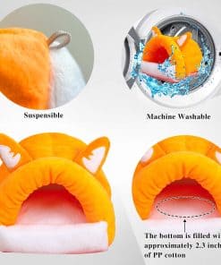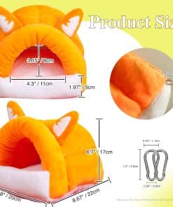 La cueva cama para cobayas cuenta con una superficie hecha de material suave de franela de cristal y está rellena con algodón PP grueso y de alta calidad, asegurando que se mantenga cálida y mantenga bien su forma. Tamaño adecuado Tamaño: 7,9 x 7,9 x 7 pulgadas 7.04 Onzas El cojín inferior tiene aproximadamente 1,18 pulgadas de grosor Dale a tu mascota áreas cálidas y suaves para relajarse Fácil de limpiar Se puede lavar a mano o a máquina. Material de alta calidad que no se deforma Nota: Por favor mide a tus mascotas cuidadosamente antes de comprar, asegúrate de obtener suficiente espacio para ellas.