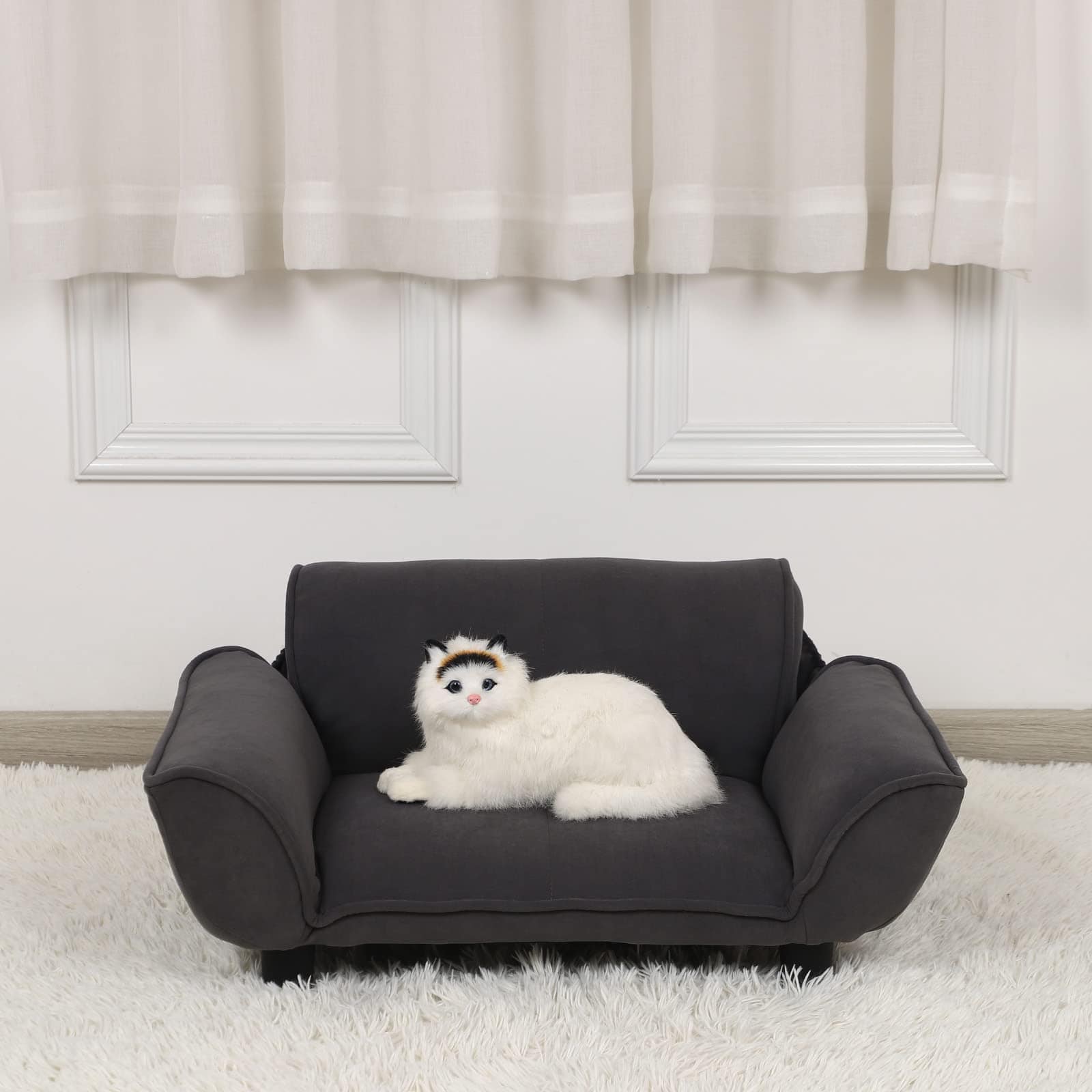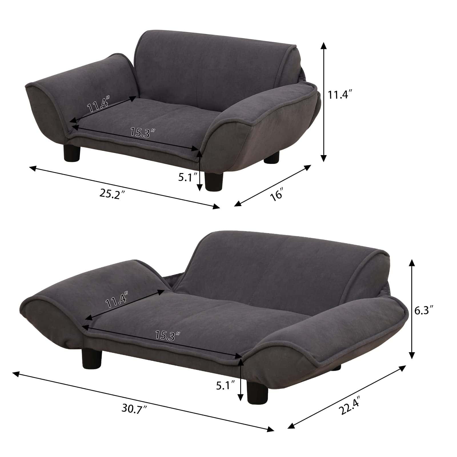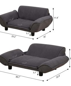 Este es un popular y excelente sofá cama para perros, gatos y pequeños animales. El interior es de marco de metal y tiene una estructura resistente. Este sofá para mascotas tiene la función de estiramiento con respaldo y reposabrazos cuando tu mascota necesita más espacio. Tamaño del producto: 25.2 X 15.9 X 11.4 pulgadas (64 40.5 29cm). Tamaño extendido: 78 X 57 X 16 cm. Material: Marco de metal con algodón suave y tela de terciopelo.