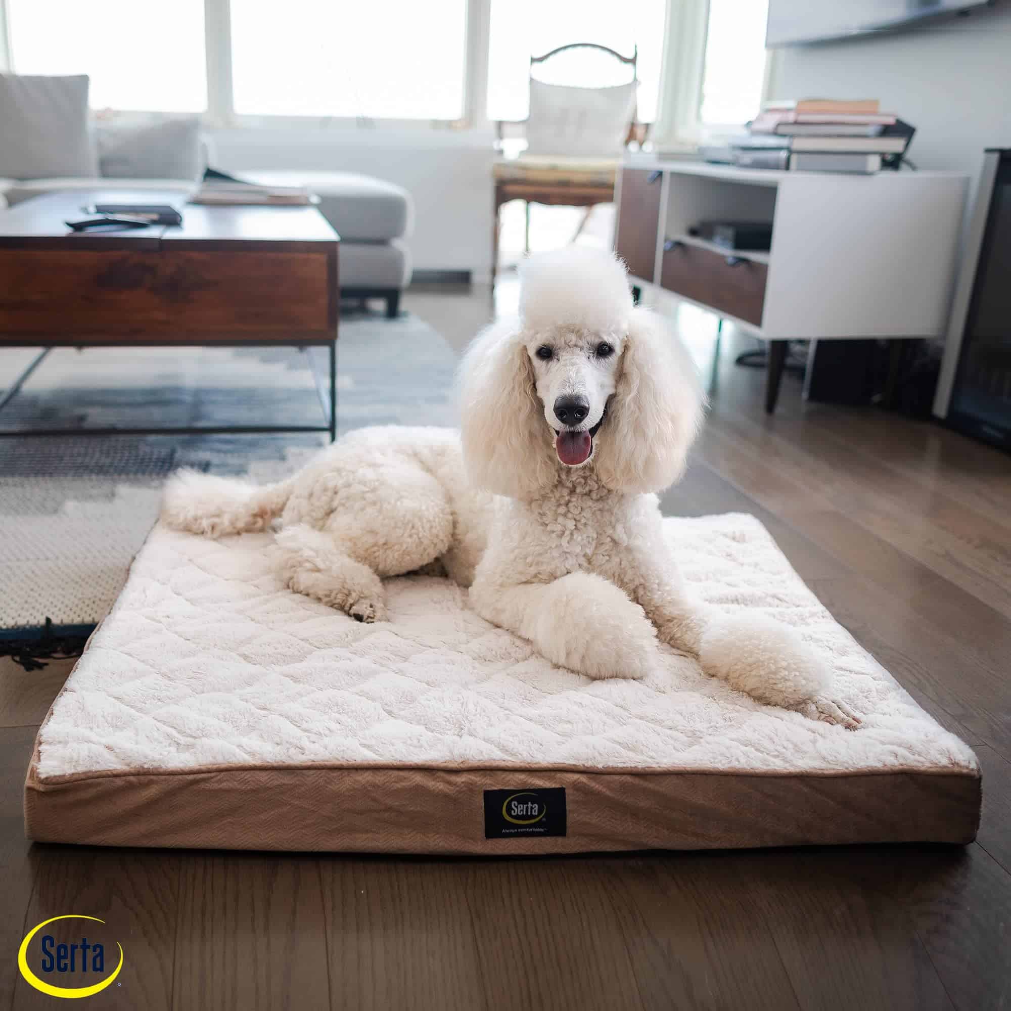 1. CALIDAD SERTA: Nuestra cama para perros Serta Quilted Pillow Top es ideal para mascotas que les gusta estirarse al dormir. Diseñada para brindar apoyo y alivio de presión para perros con displasia de cadera o problemas articulares.