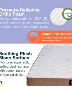 ¡Dale a tu perro el supremo confort y lujo que anhelan! La espuma terapéutica del Quilted Pillow Top está diseñada para brindar apoyo y alivio de presión para perros con displasia de cadera o problemas articulares. El diseño de colchón de apoyo ayuda a calmar a tu mascota cansada. La espuma ortopédica con diseño convoluto soporta las articulaciones cansadas de tu mascota. Perfecto para perros que les gusta estirarse al dormir. Superficie de descanso acolchada de dos tonos, súper suave. Patrón contemporáneo en relieve. Coloque varias camas una al lado de la otra para hacer un área de descanso flexible. Funda con cierre para un lavado fácil.