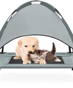 Haz que tu cachorro se relaje en la cama para mascotas PawfectPals para uso en interiores y exteriores. Esta cama está diseñada para ser cómoda dondequiera que vayas. Llévala al aire libre y coloca el dosel afuera para obtener sombra o si estás en interiores, simplemente quita el dosel. Es muy fácil de armar, no se necesitan herramientas ni tornillos. Muy ligera y fácil de transportar. La elevación de esta cama para perros también es muy beneficiosa, ya que permite que el aire fluya desde todos los ángulos. Ayudará con el alivio de las articulaciones, ya que estas no están apoyadas planas en el suelo. Dimensiones para tamaño mediano: 30 x 24 x 20 pulgadas