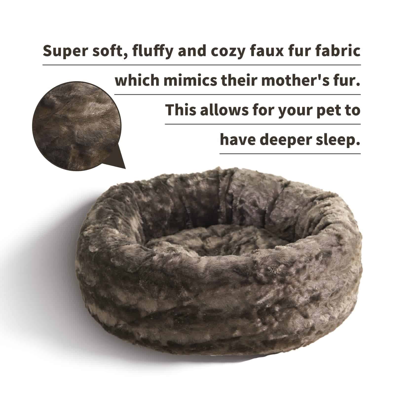 2. DISEÑO CÓMODO Y CALMANTE | Esta cama para mascotas tiene un diseño con borde elevado para proporcionar soporte para la cabeza y el cuello. El borde en forma de rosquilla crea un lugar seguro y cálido para que su mascota se acurruque para descansar o dormir. (No es adecuado para mascotas con comportamientos excesivos de masticación o mordisqueo).