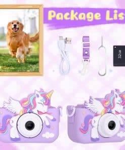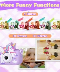 La cámara para niños de Unicornio Envyvip es ideal para fomentar la curiosidad y la creatividad en los niños. Con una cámara principal de 12 megapíxeles y una cámara de selfie de 720P, los niños podrán capturar fotos y videos claros. Viene con 28 marcos, 10 efectos especiales y 6 filtros incorporados para personalizar sus fotos. La batería se carga en solo 1.5 horas y ofrece de 4 a 6 horas de uso continuo. Su tamaño compacto es perfecto para manos pequeñas y el estuche de silicona seguro y adorable reduce daños por caídas. Además, incluye un reproductor de MP3 y cinco juegos educativos para agregar diversión y creatividad. ¡Un regalo perfecto para cualquier ocasión!