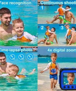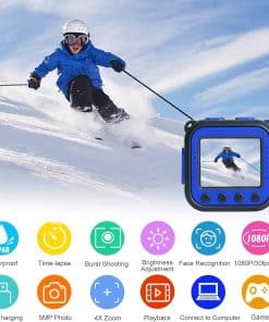 Cámara realmente para niños a prueba de agua que viene con funda resistente y accesorios para andar en skate, nadar, andar en bicicleta, hacer skateboarding y más! Esta cámara de acción es genial para deportes de niños! La cámara de video para niños viene con 2 soportes que permiten que la cámara se adhiera a cualquier superficie plana (patinetas, cascos) y bicicletas. Es resistente al agua, al polvo, a los golpes y a las caídas, fácil y conveniente de llevar a todas partes. La cámara de regalo para niños tiene una batería recargable de 3.7V, aproximadamente 1.5 horas de tiempo de grabación. La cámara de ahorro automático de energía se apagará si solo queda 5 minutos de energía. La cámara de los niños vendrá con una tarjeta de memoria de 32g (La tarjeta ha sido insertada en la cámara). Esta cámara digital para niños puede almacenar cientos de fotos para grabar el momento feliz de los niños. Notas: Si la tarjeta de memoria no es reconocida, conecta la cámara a la PC con un cable de datos, formatea la tarjeta SD a FAT32 en la PC, luego saca la tarjeta SD, encuentra «Reset all» en la configuración de la cámara para restablecer, e inserta la tarjeta SD para leer de nuevo. Usa Apple Mac para transferir los datos, necesitas un adaptador para convertir.