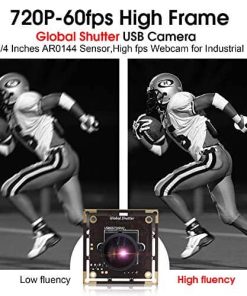 Especificaciones: Sensor: 1/4 Pulgadas AR0144 Tipo de obturador: Obturador Global, Tipo de Puerto de Conexión: USB2.0 de Alta Velocidad Resolución Máxima: 1280(H) 720 (V) Rango Dinámico: 63.90 dB Resolución y Velocidad de Cuadro: 1280X720MJPEG@ 60fps YUY2@5fps 800X600MJPEG@ 60fps YUY2@20fps 640X480 MJPEG@ 60fps YUY2@ 30fps DC 5V, Temperatura de Trabajo: -10C a 70C Compatible con Win XP/Vista/Win7/Win8 / Linux con UVC superior a linux-2.6.26 MAC-OS X 10.4.8 o posterior/Android 4.0 o superior con UVC